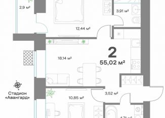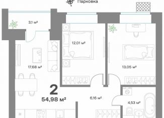 Продается двухкомнатная квартира, 55 м2