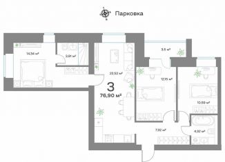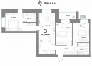 Продам 3-комнатную квартиру, 76.9 м2