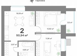 2-ком. квартира на продажу, 50.9 м2