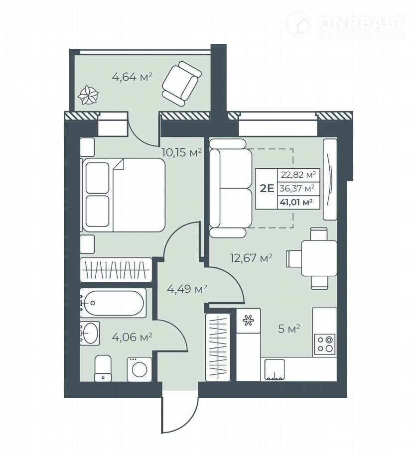 Общая площадь 41 м2