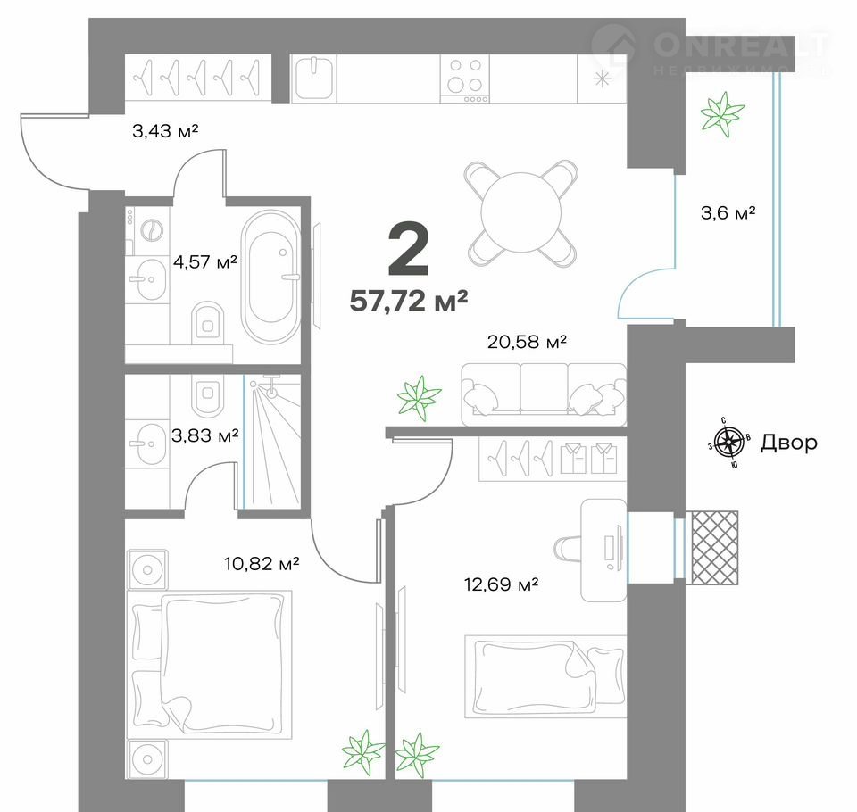 ✔ Сквозные входы – удобный доступ со двора и парковки.