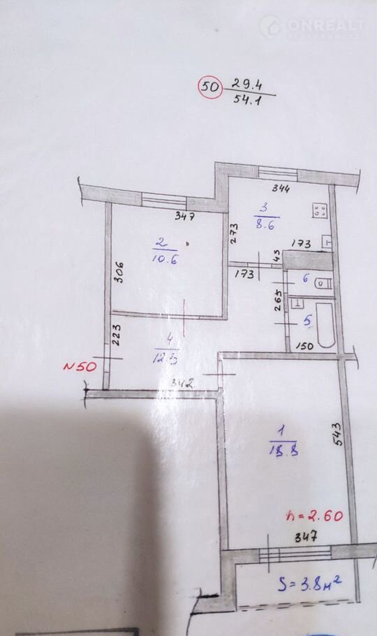 Общая площадь 56 м2