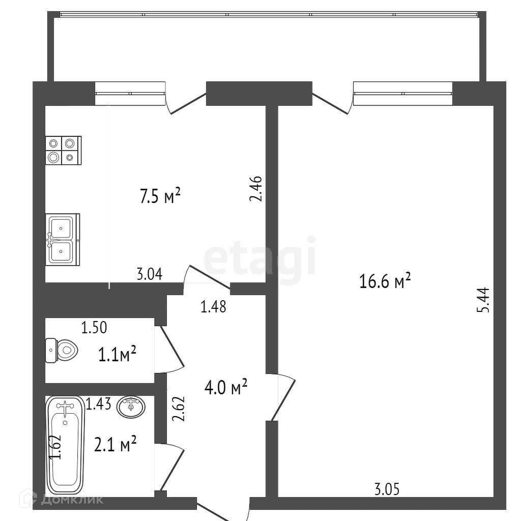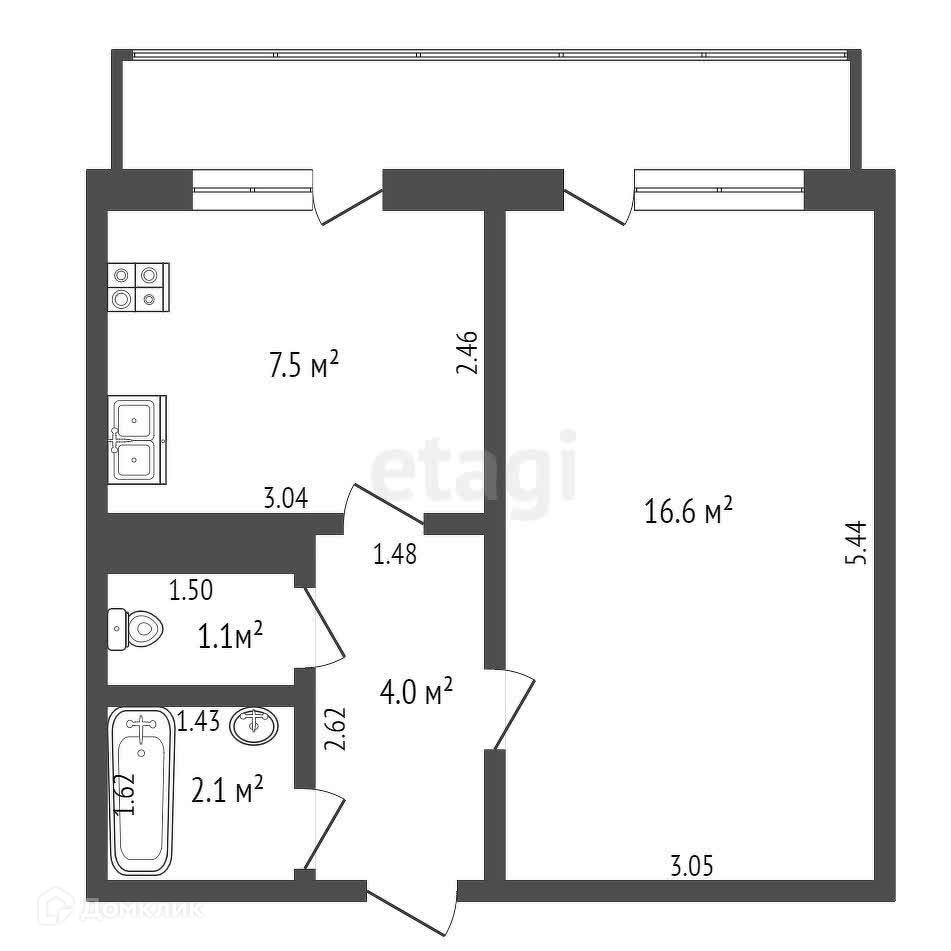 Балкон, лоджия 1 балкон