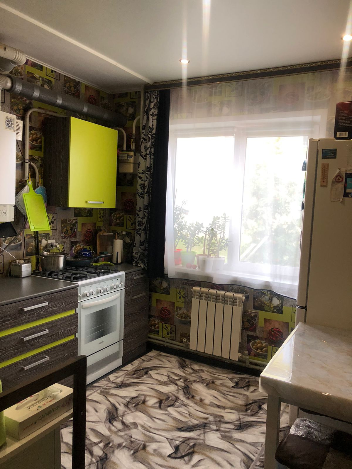 В квартире индивидуальное отопление (небольшие коммунальные платежи), косметический ремонт: лоджия застеклена, новая входная дверь, в комнате на полу ламинат, после продажи остаётся кухонный гарнитур.