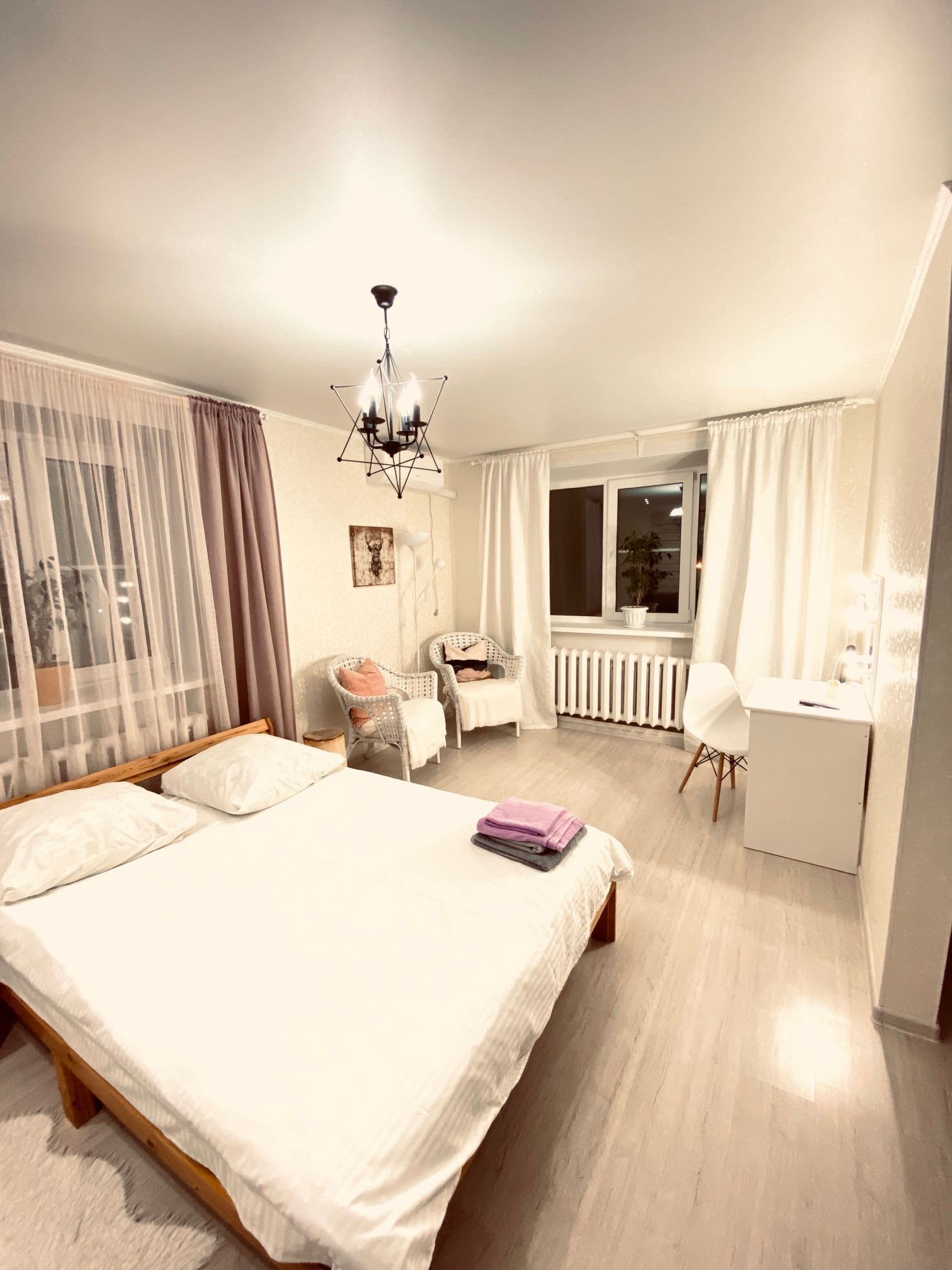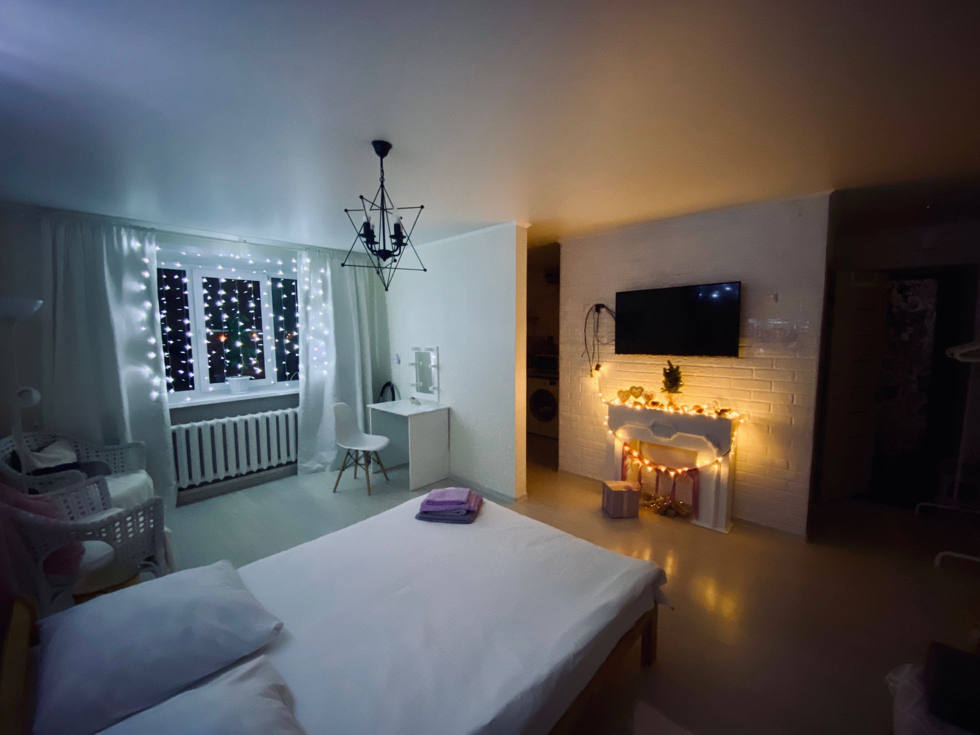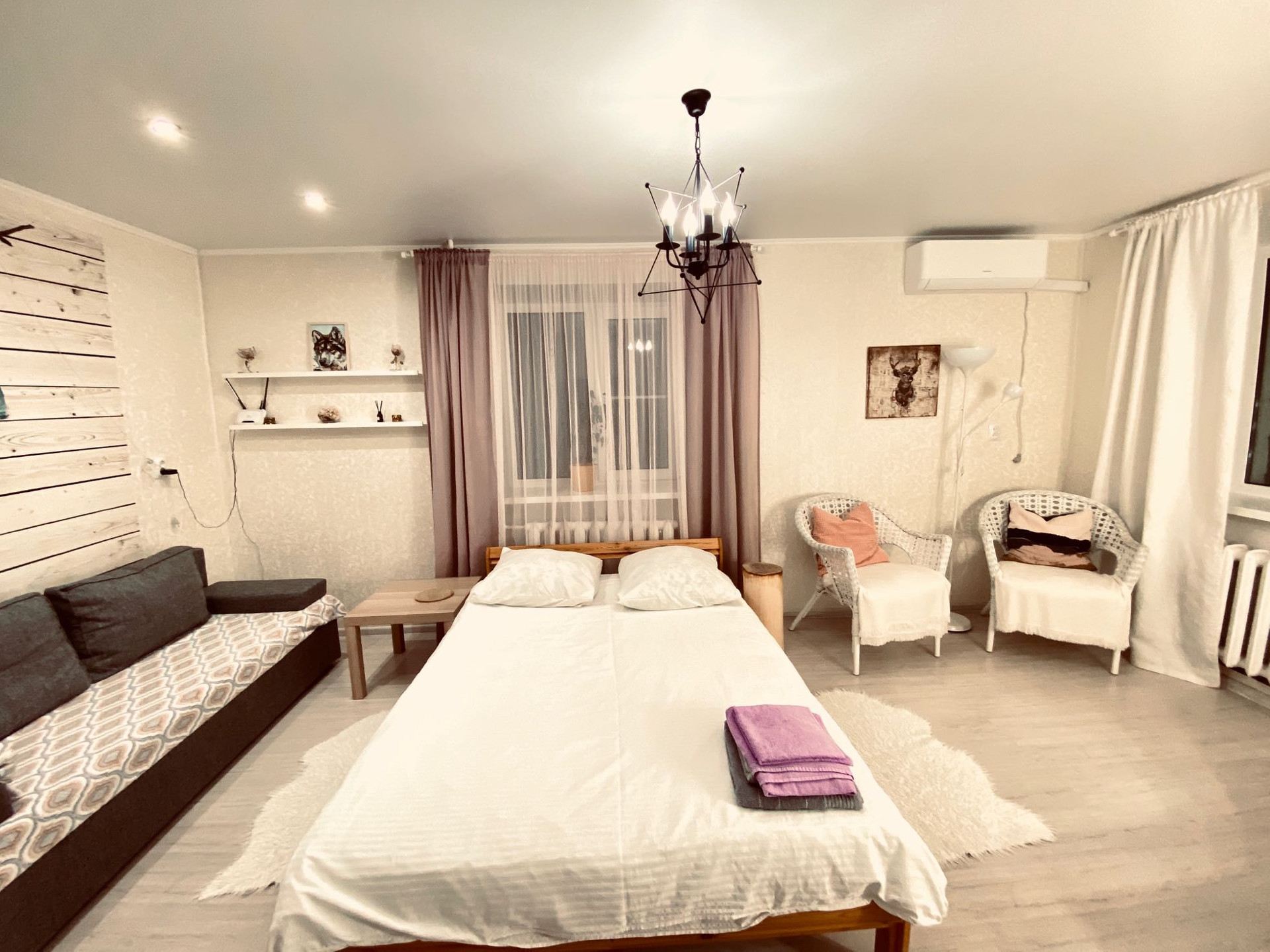 Есть абсолютно все для комфортного проживания, кровать 140*200 с хорошим матрасом, диван раскладной 140*200