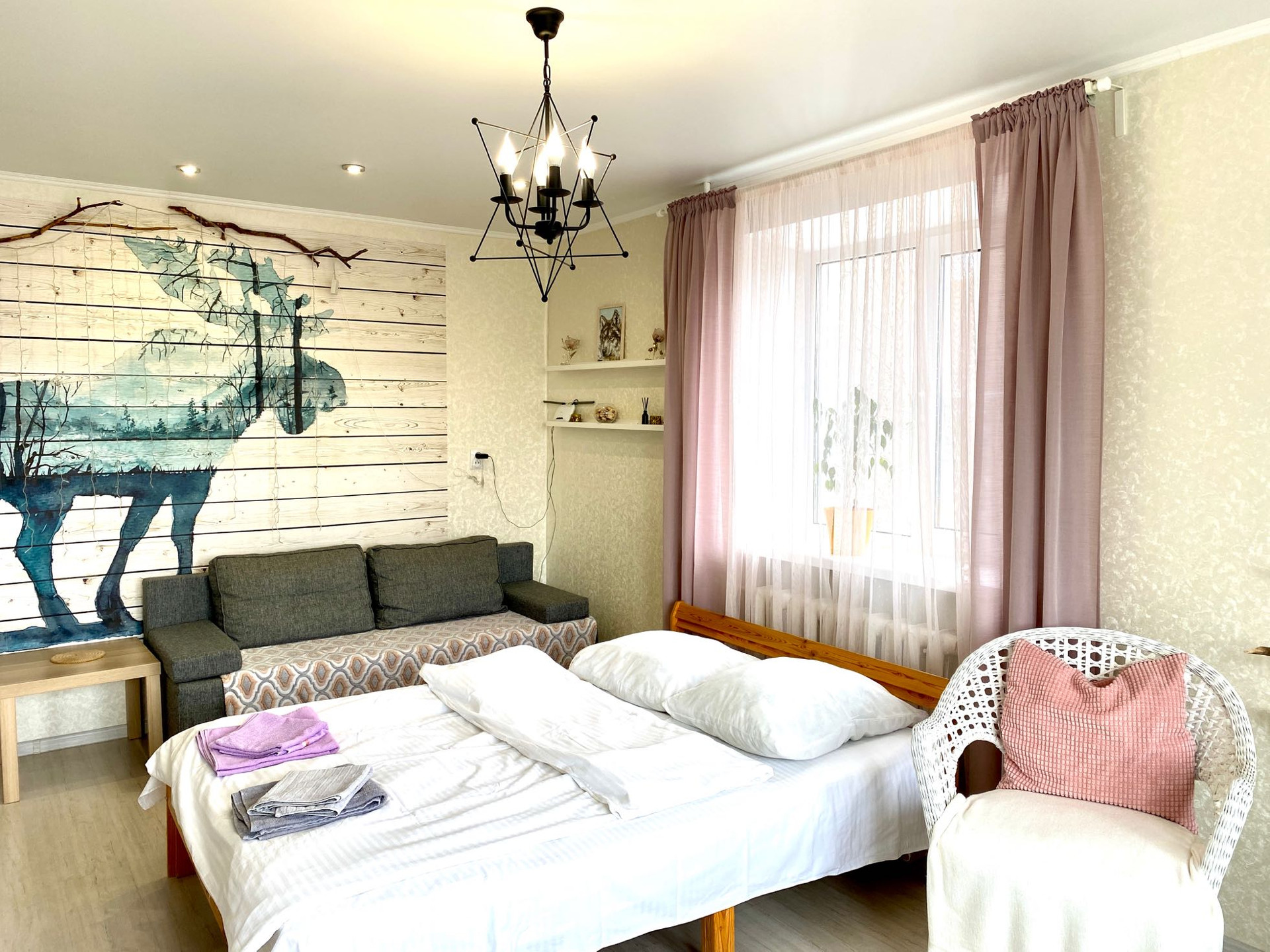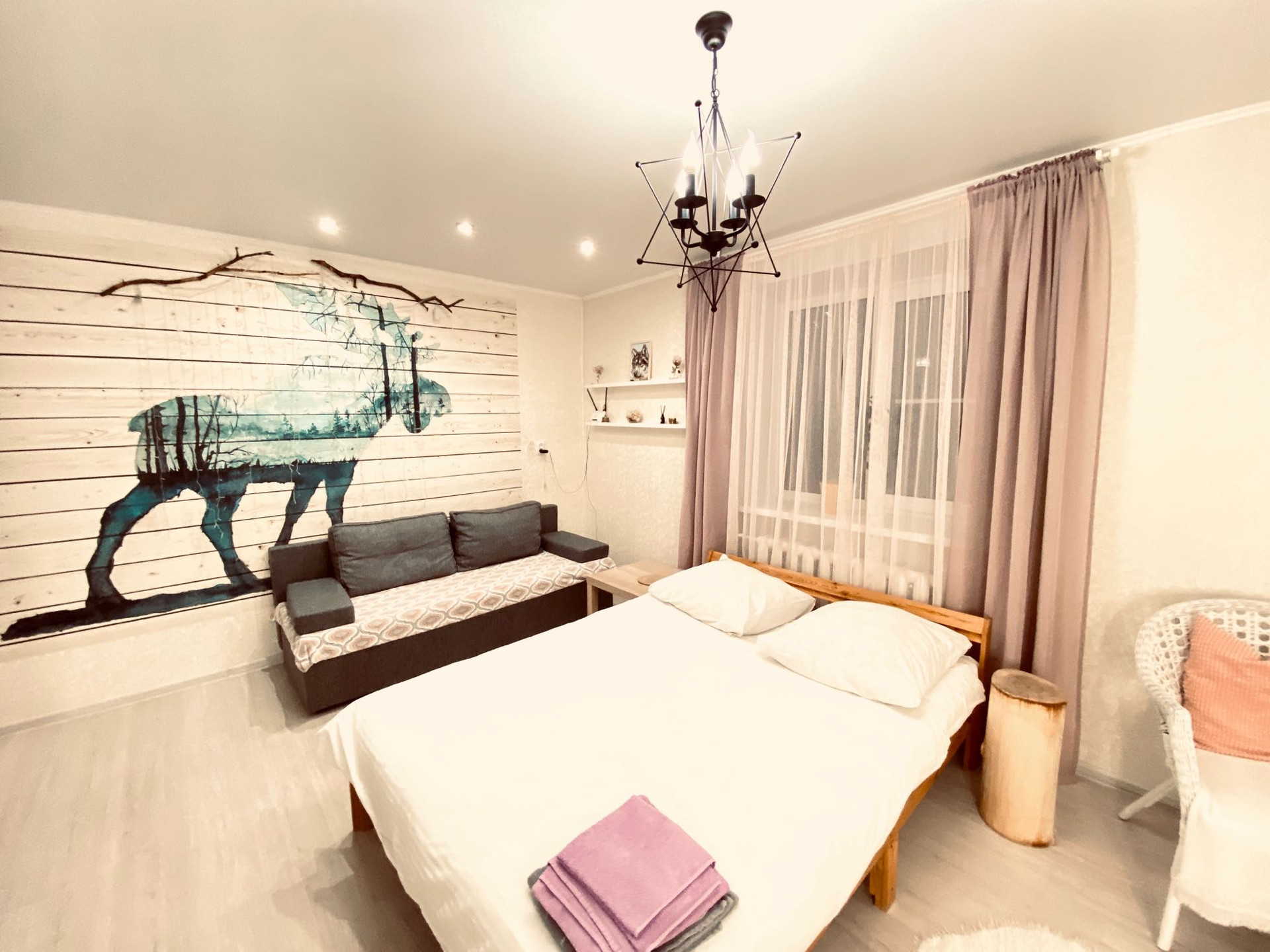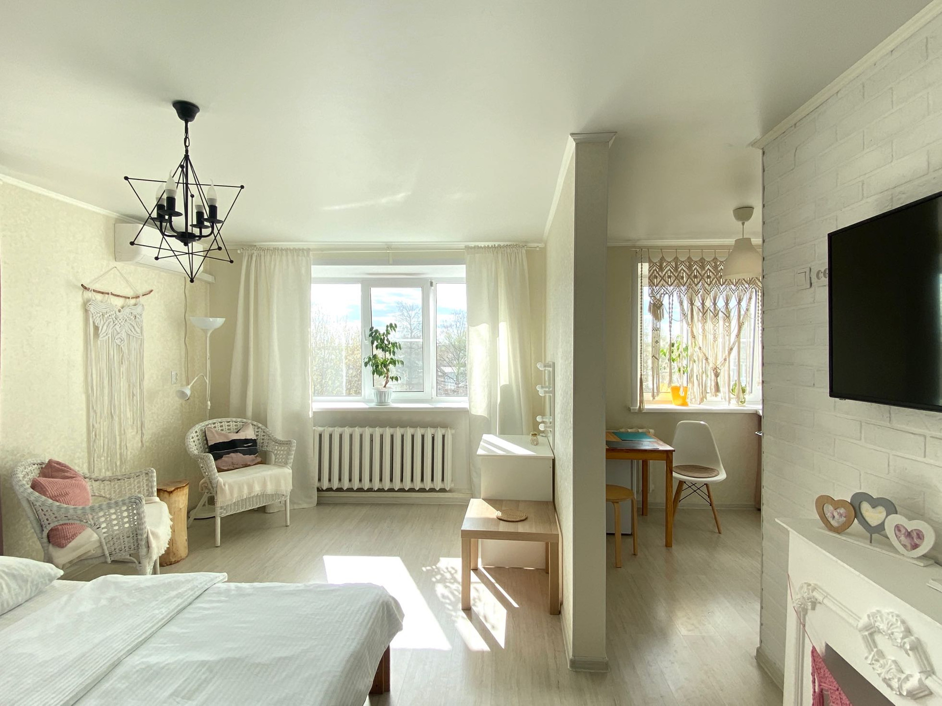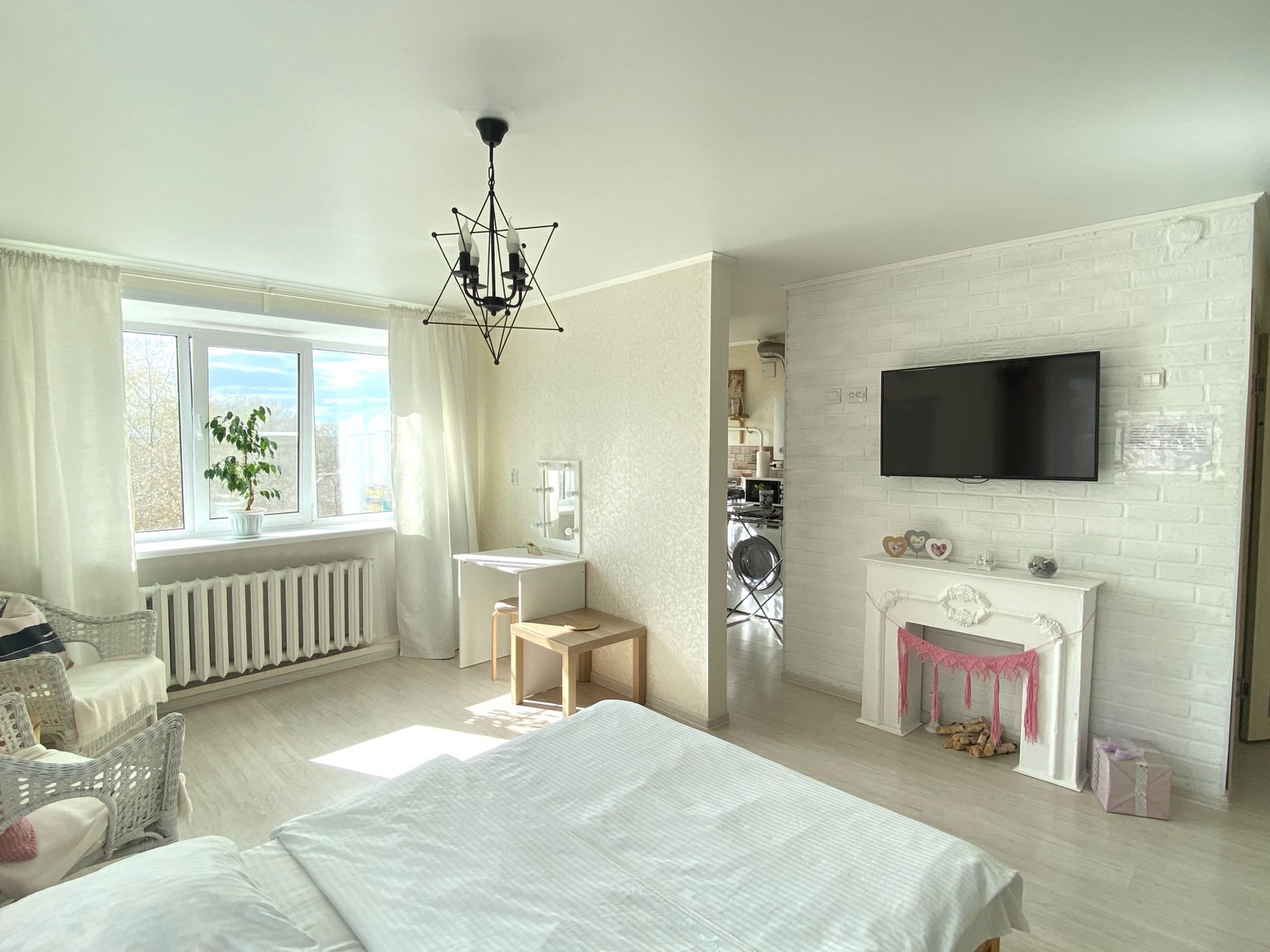 Есть абсолютно все для комфортного проживания, кровать 140*200 с хорошим матрасом, диван раскладной 140*200