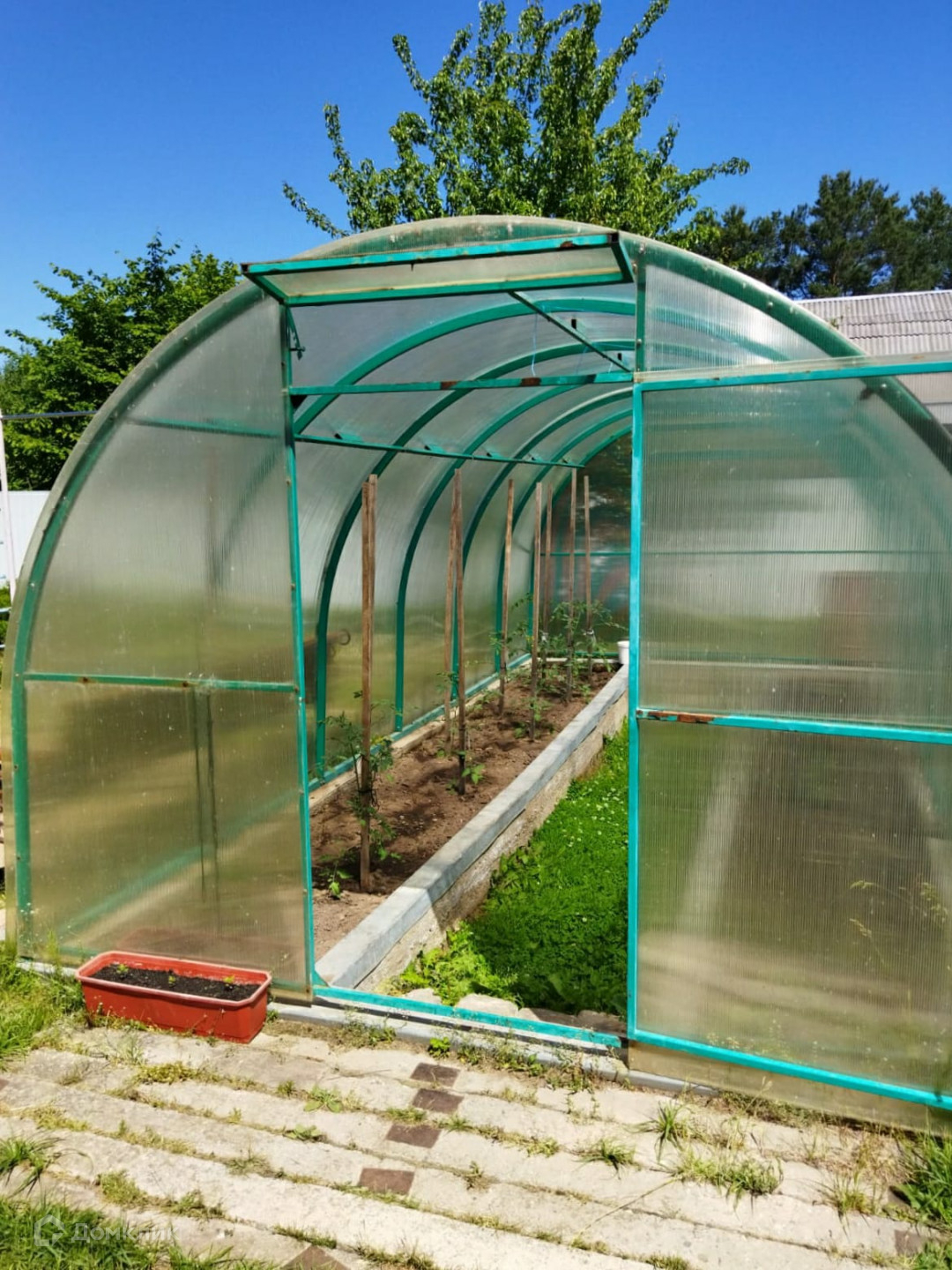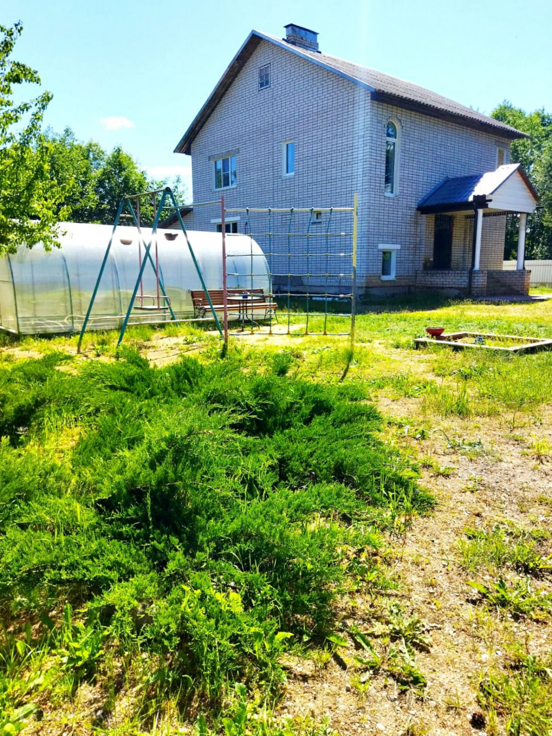 На участке находится сарай, теплица. Есть огород, сад, спортивная площадка.