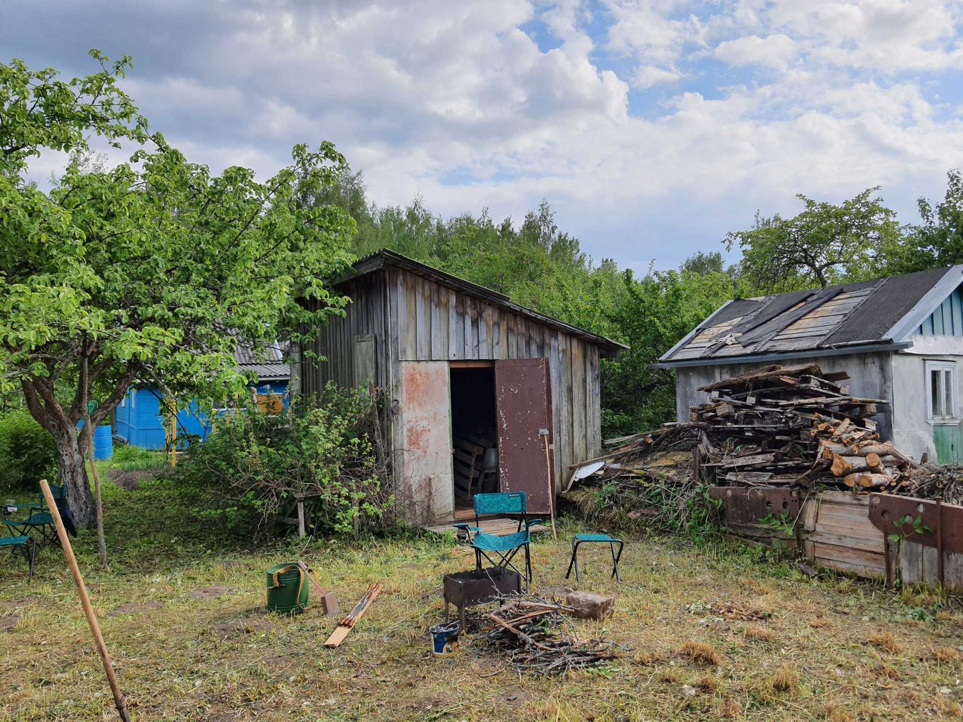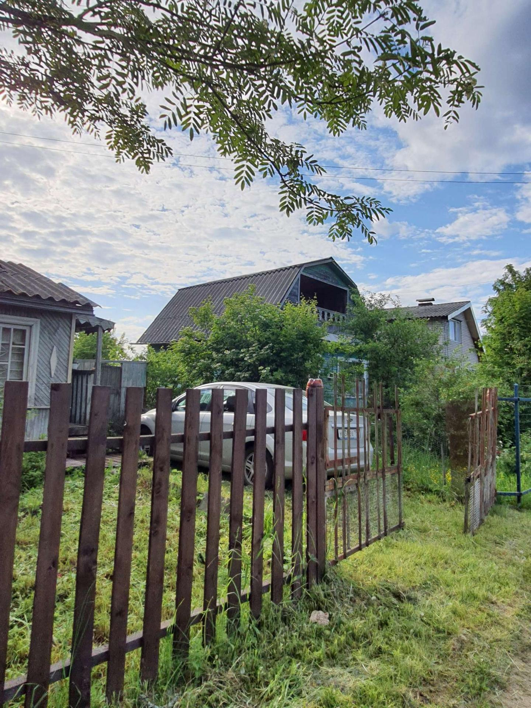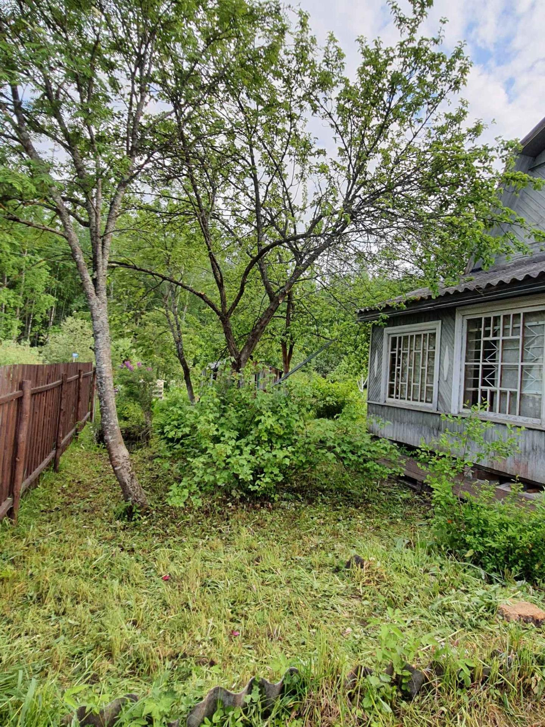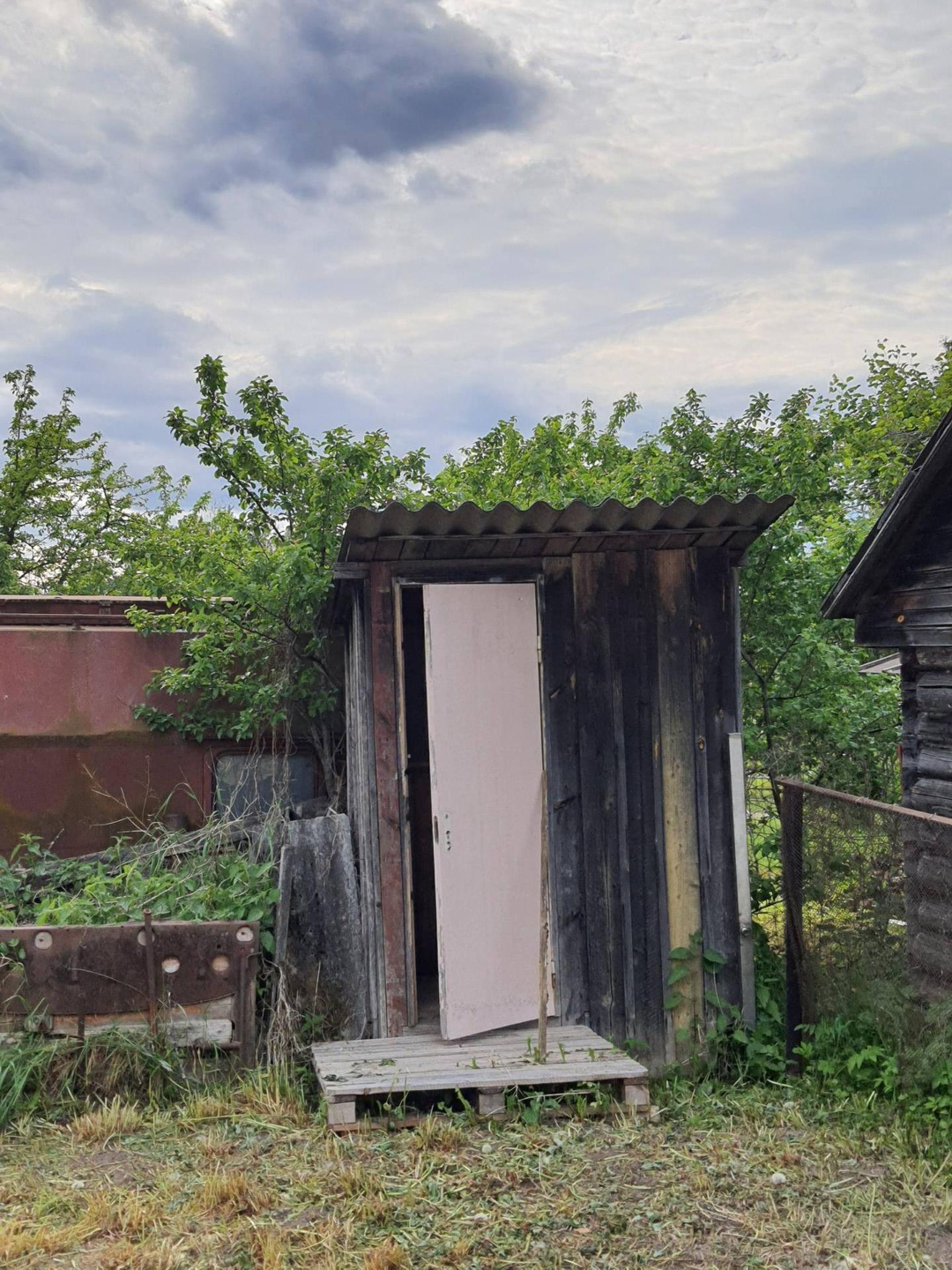 - 3 постройки: дом, сарай из бревен - заготовка под баню 6х3 метра (не успели доделать баню), туалет;