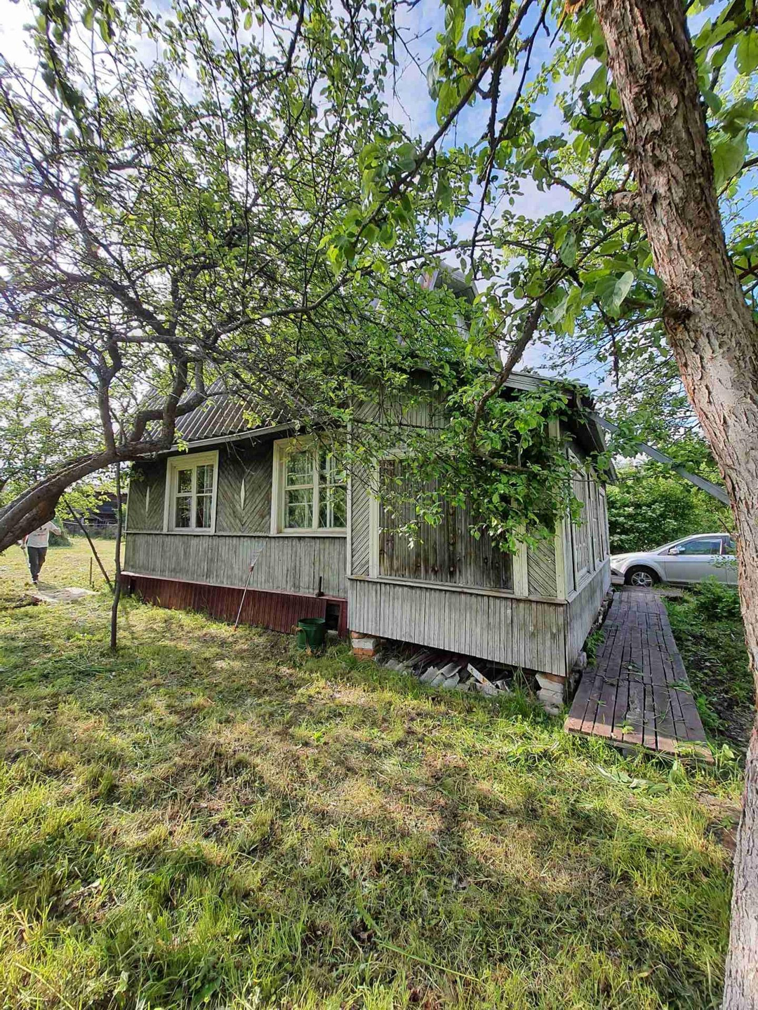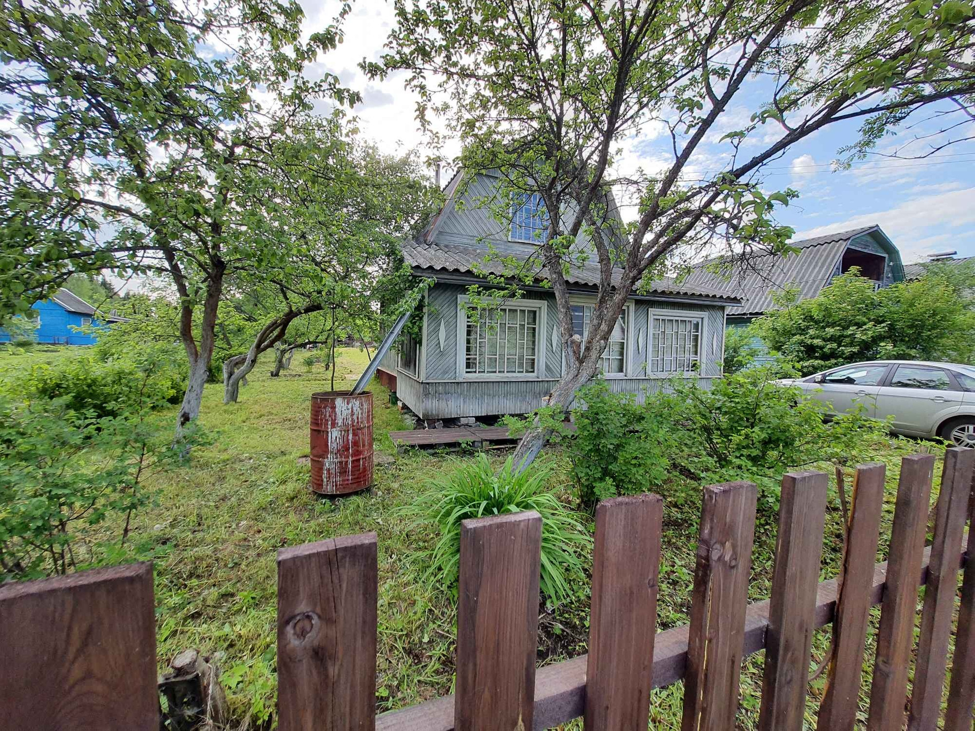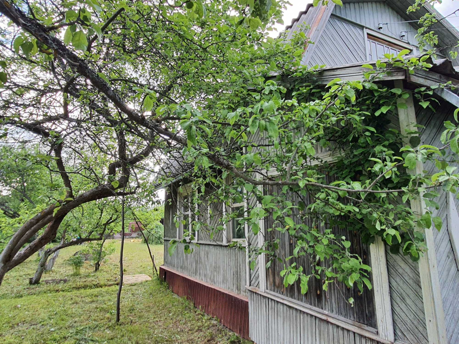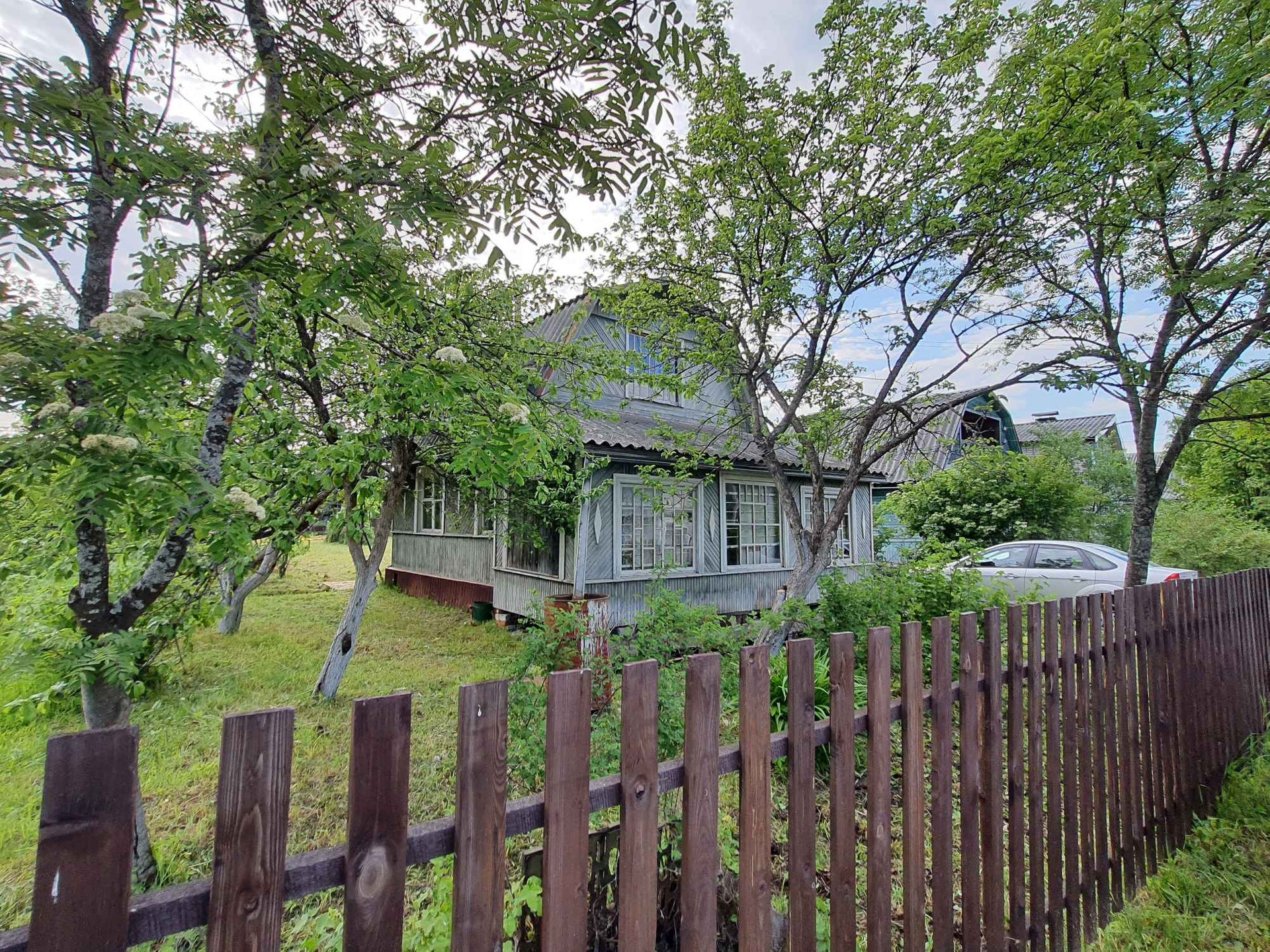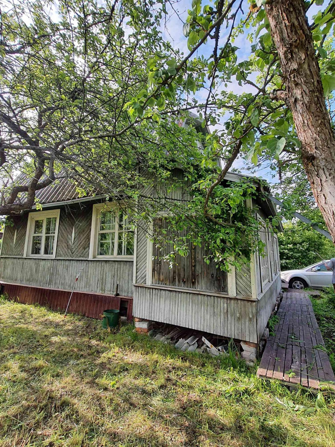 - 3 постройки: дом, сарай из бревен - заготовка под баню 6х3 метра (не успели доделать баню), туалет;