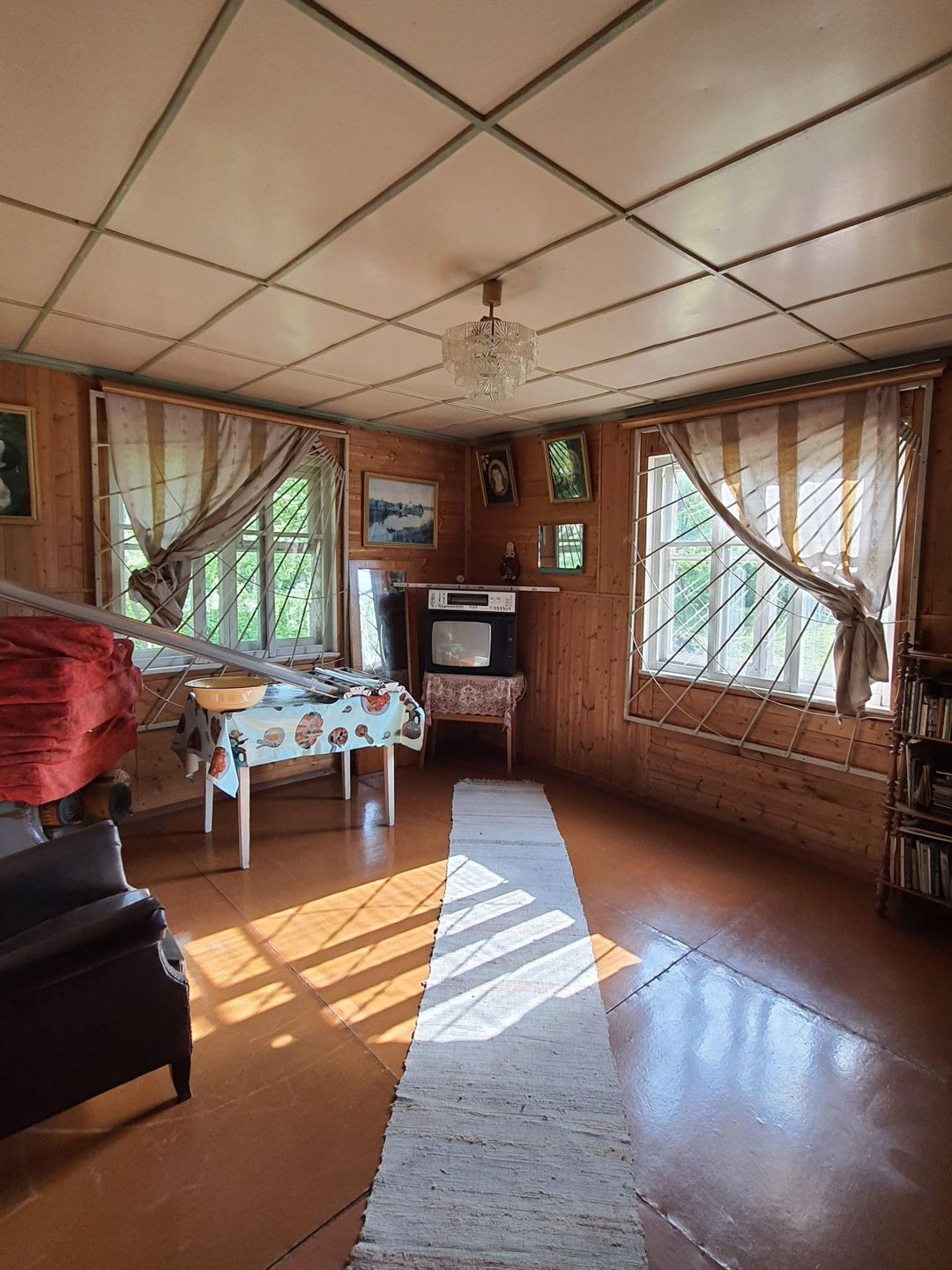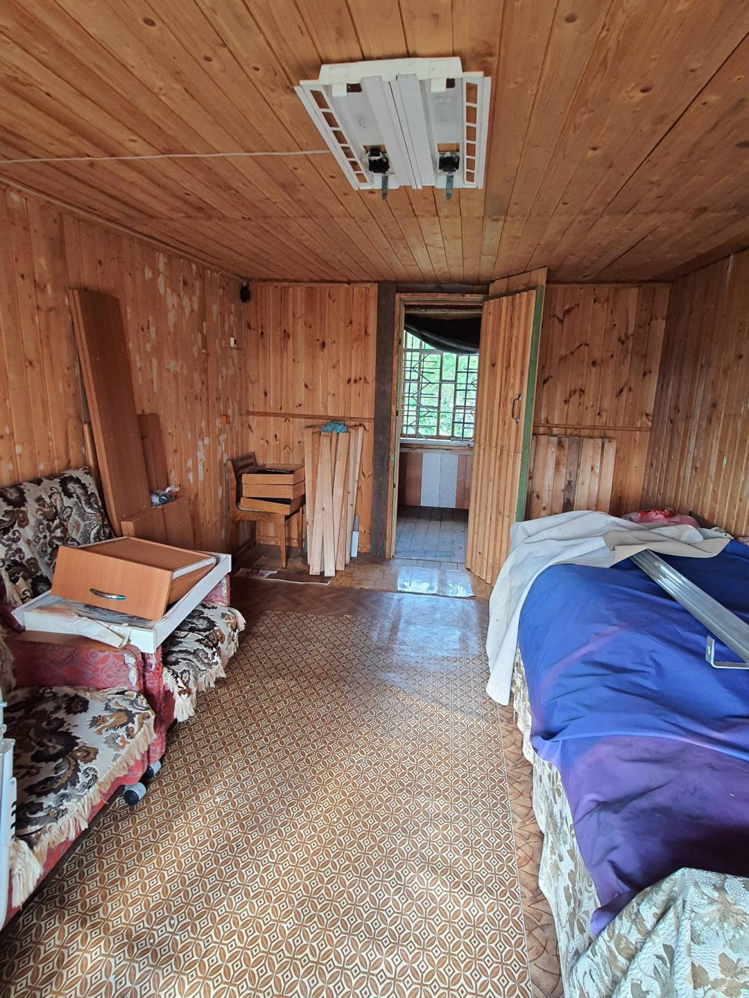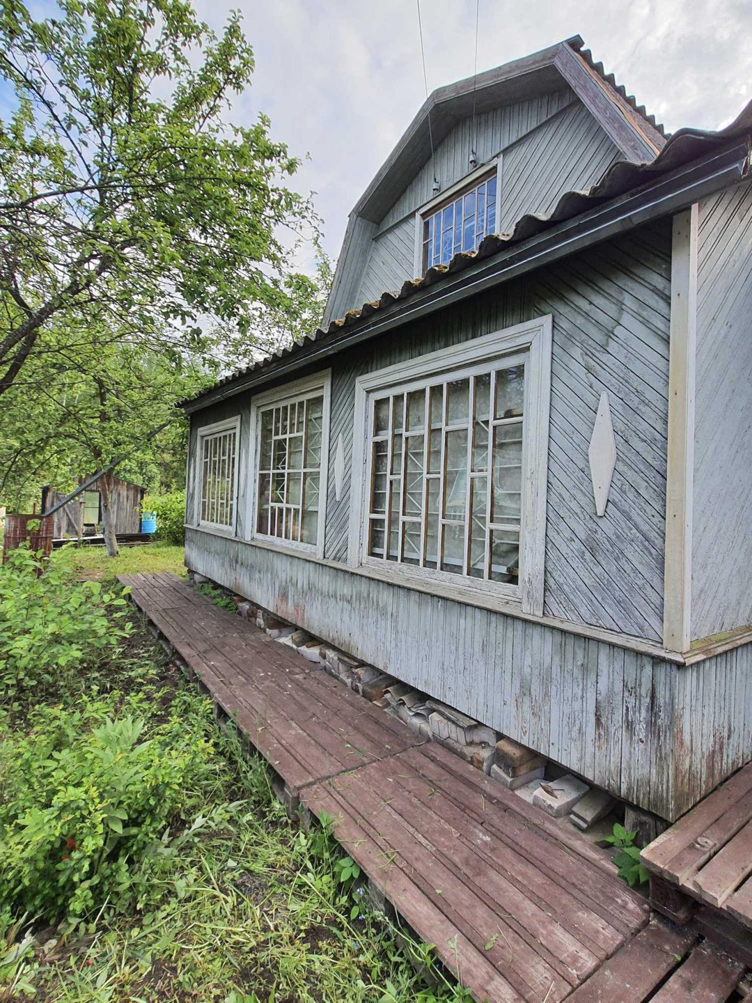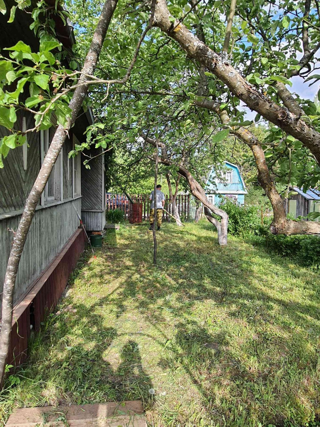 - 3 постройки: дом, сарай из бревен - заготовка под баню 6х3 метра (не успели доделать баню), туалет;