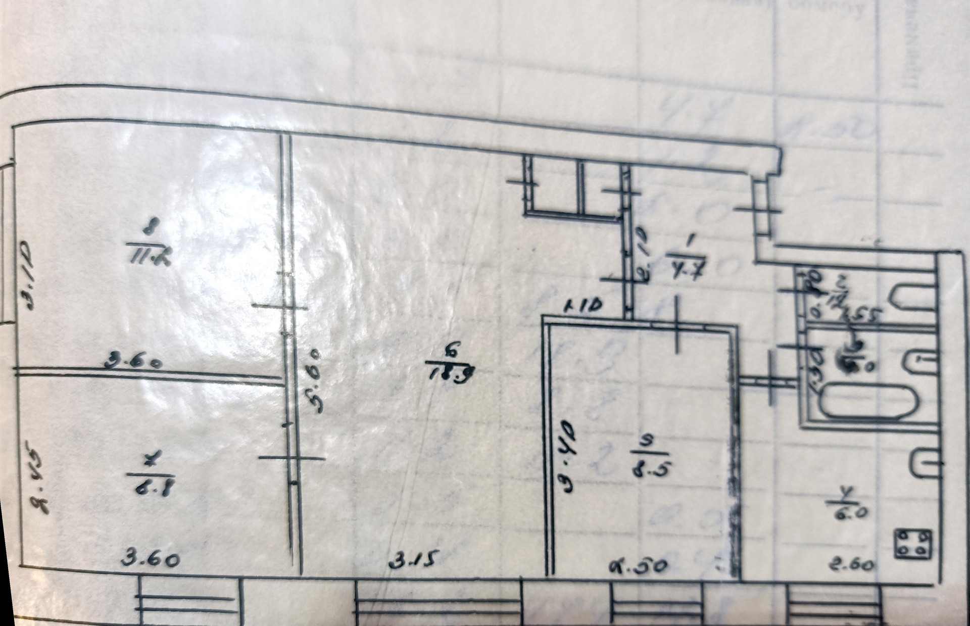 Жилая площадь 47.4 м2