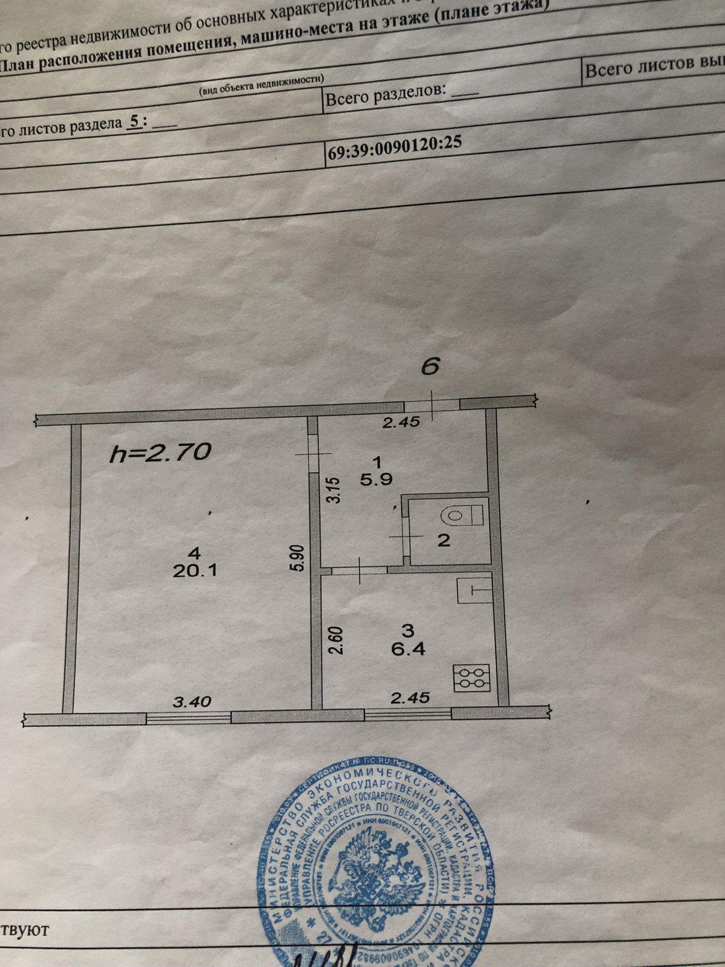 Общая площадь 34 м2