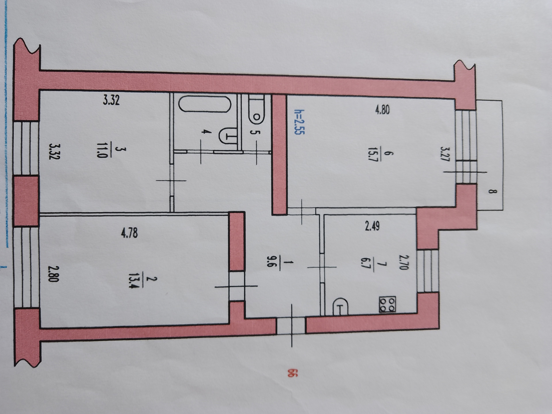 Высота потолков 2.5 м