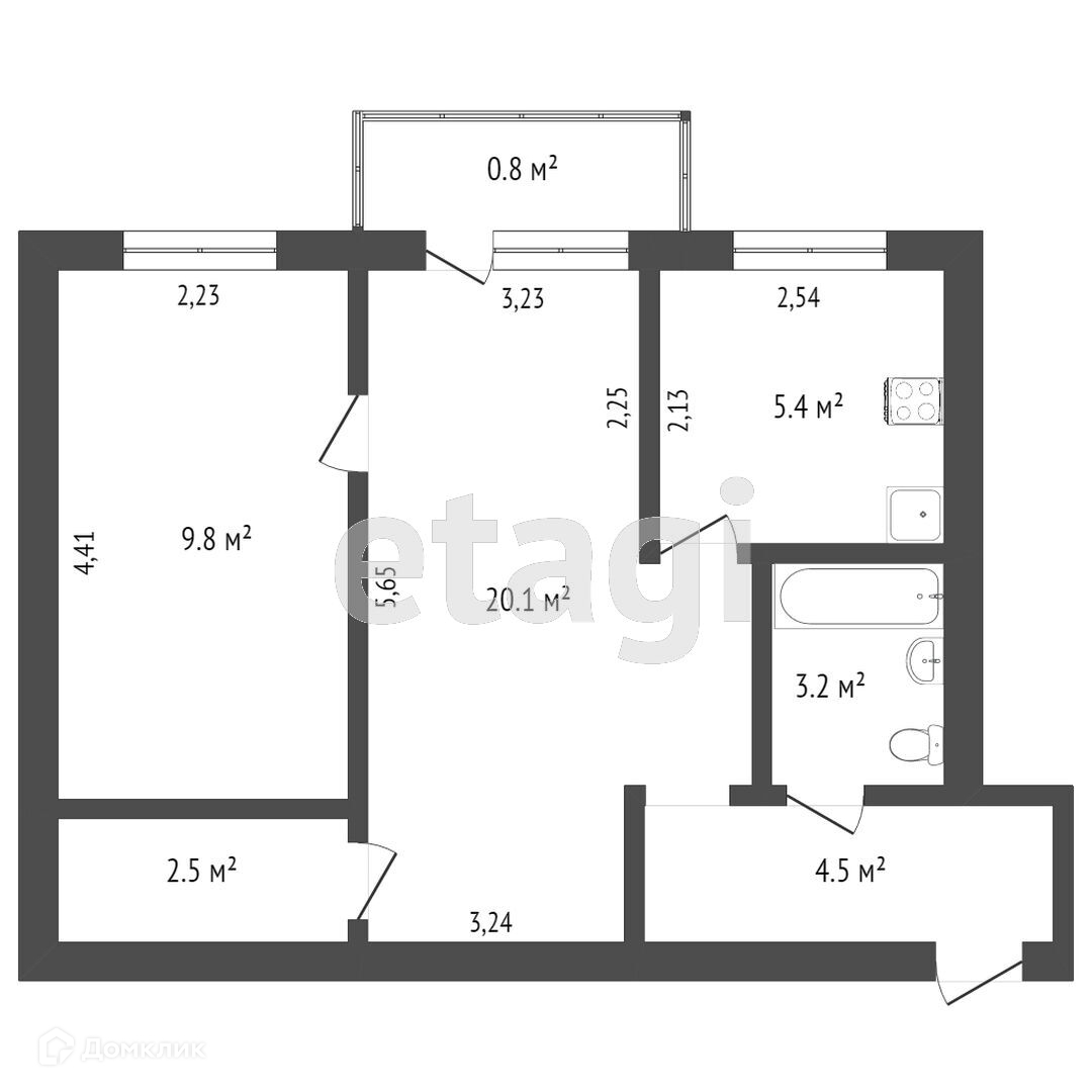 Общая площадь 43 м2