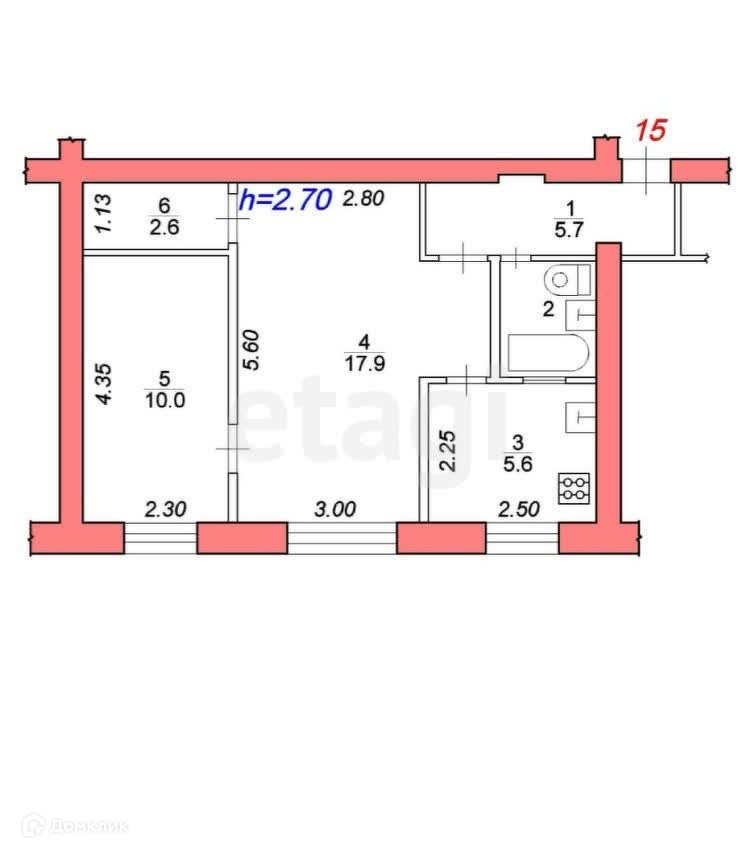 Балкон, лоджия 1 балкон