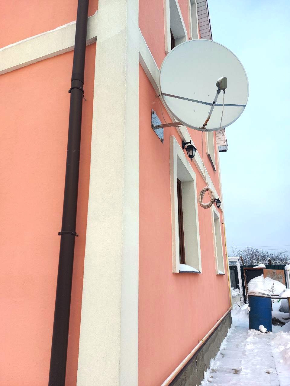 Фундамент: ленточный + монолитная плита. Перекрытия между первым и вторым этажом – бетонные. Между вторым этажом и мансардой – брус 150×200 с утеплением минватой 20 см. Кровля – металлочерепица. Окна – стеклопакеты Rehau.