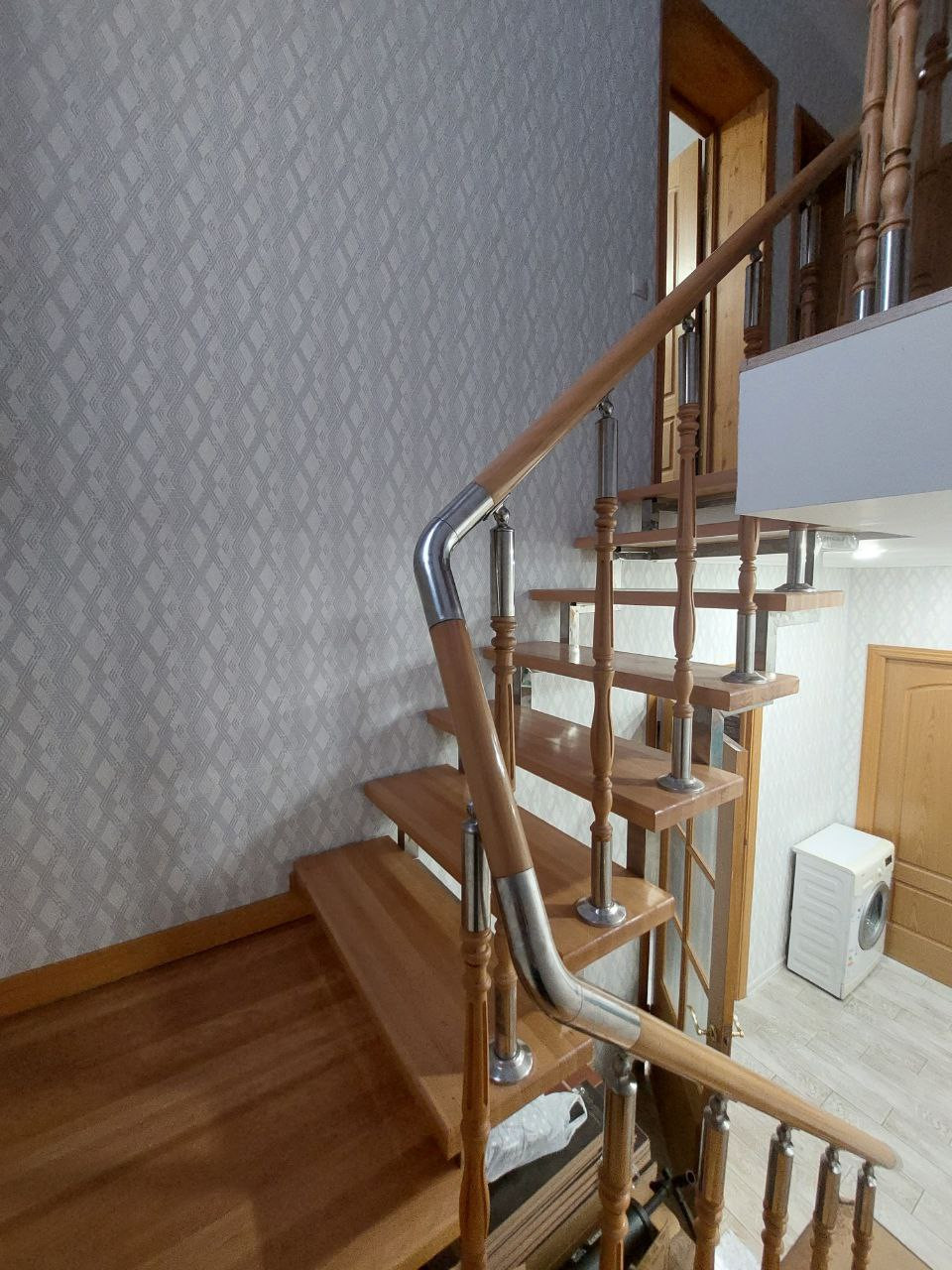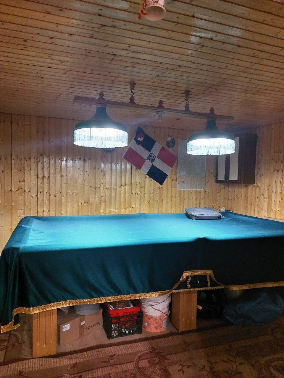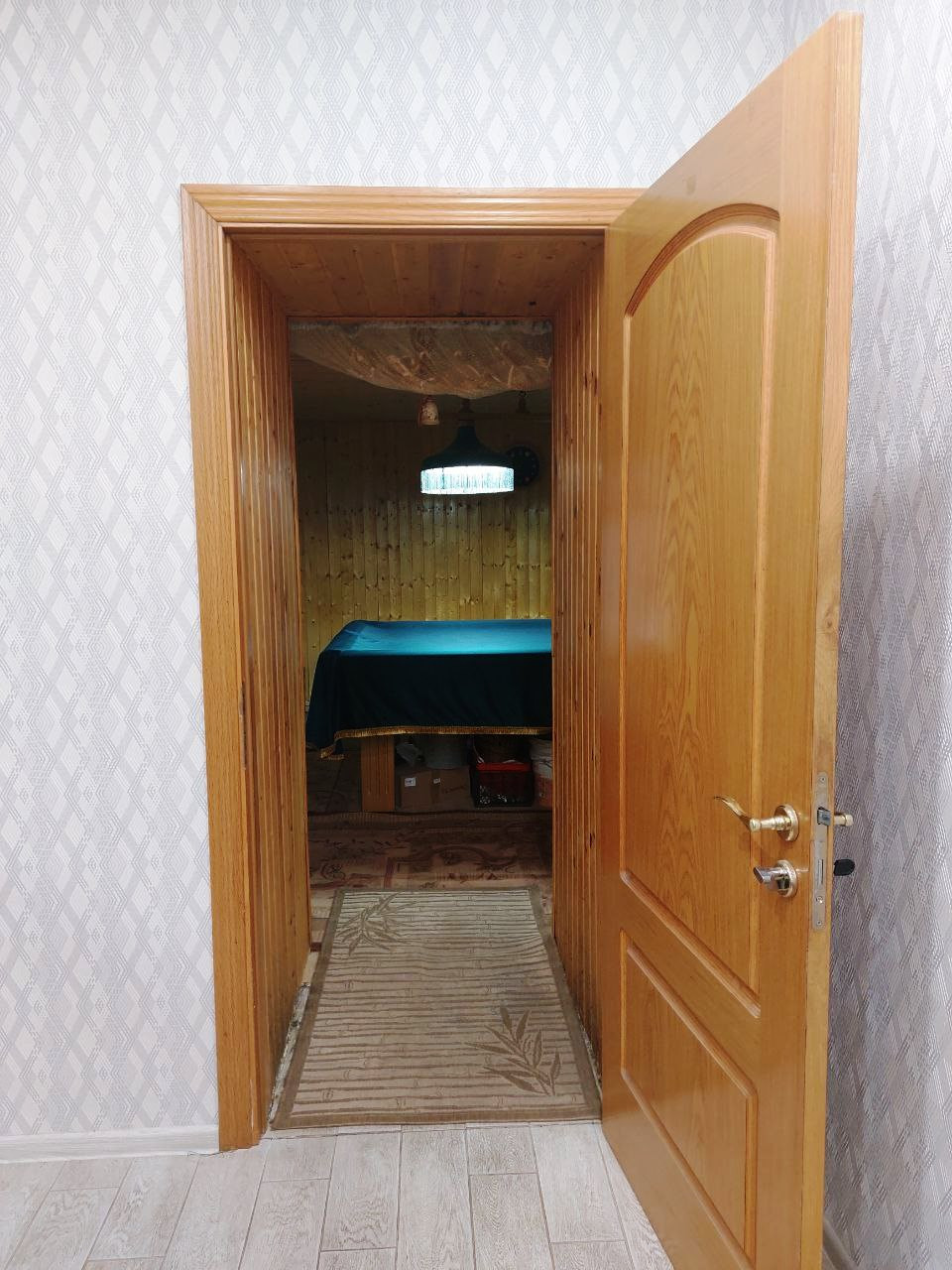 На 1 этаже дома расположены кухня-гостиная 24 м2, бильярдная 17,7 м2, совмещенный санузел 6,2 м2, прихожая 6 м2, коридор с лестничным пролетом 12,6 м2, котельная 5,4 м2.