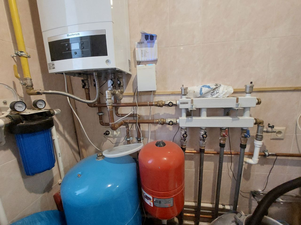 Отопление - магистральный газ. Установлены немецкий газовый котел Buderus 24 квт, бойлер косвенного нагрева на 180л, произведен монтаж теплого водяного пола по всему периметру первого этажа и в санузле второго этажа.