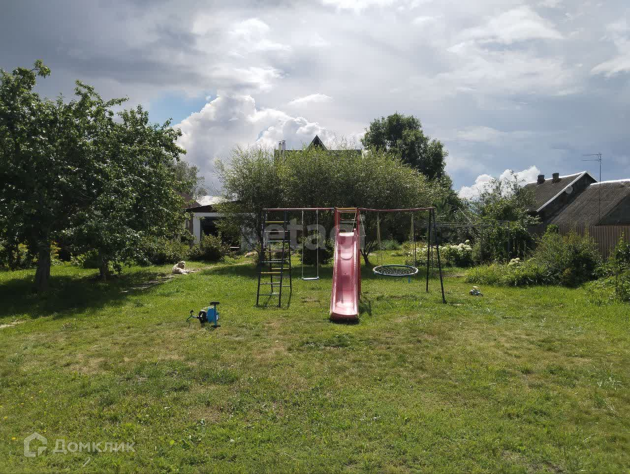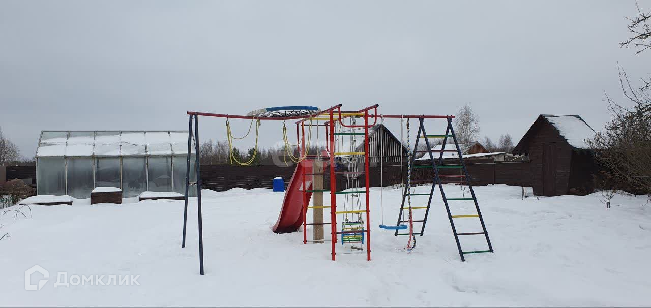 На участке 2 дровника, беседка, баня, козлятник (разделён на 3 помещения), большая теплица из стекла и металла, детская площадка, огород за забором, который тоже огорожен.