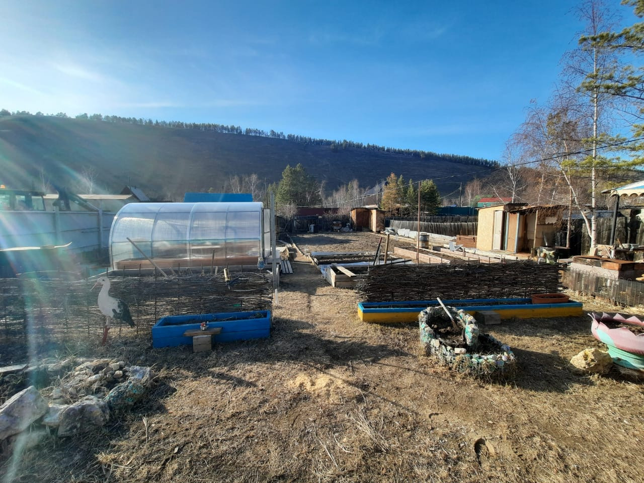 - Теплица , грядки , картофельное поле