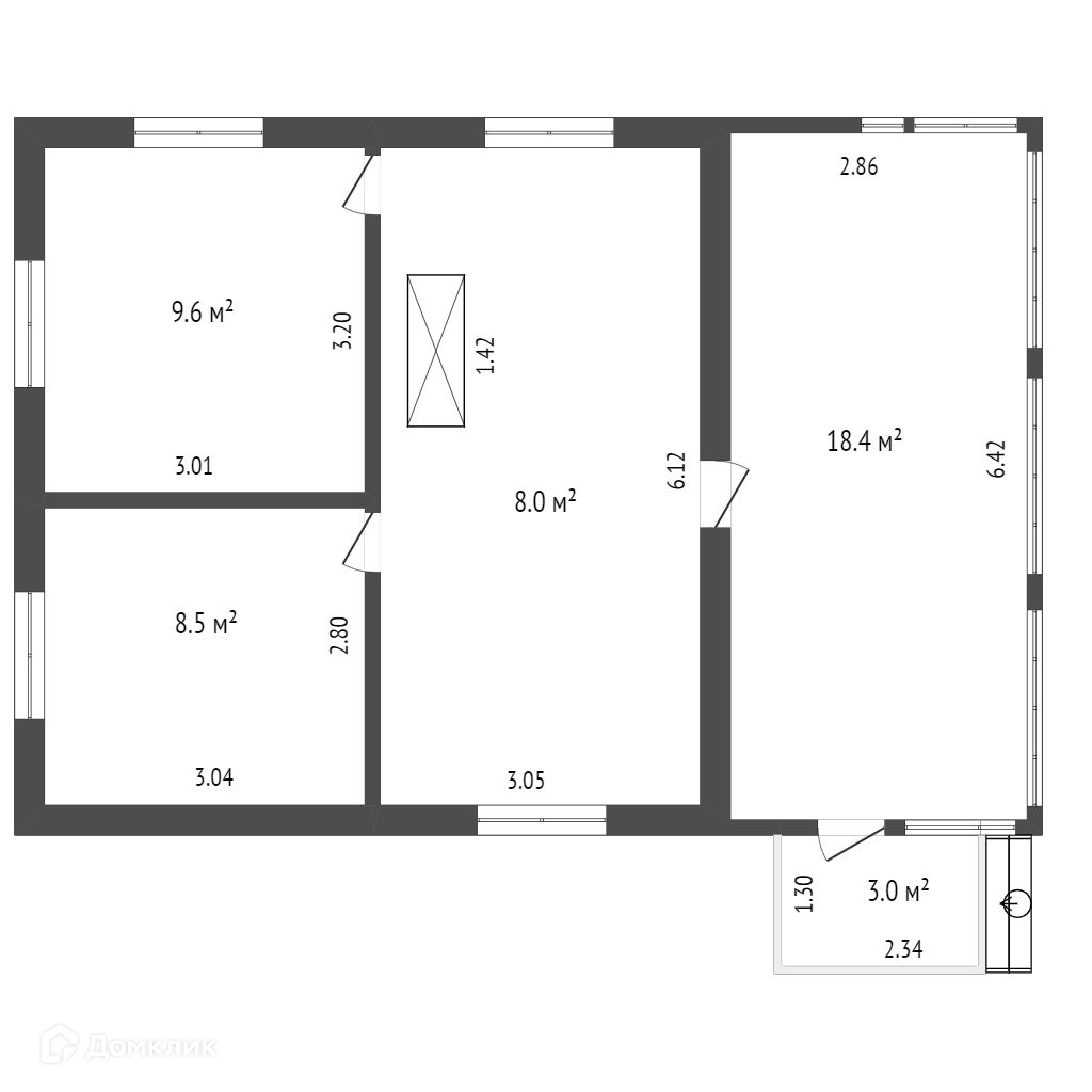 Общая площадь 44.5 м2