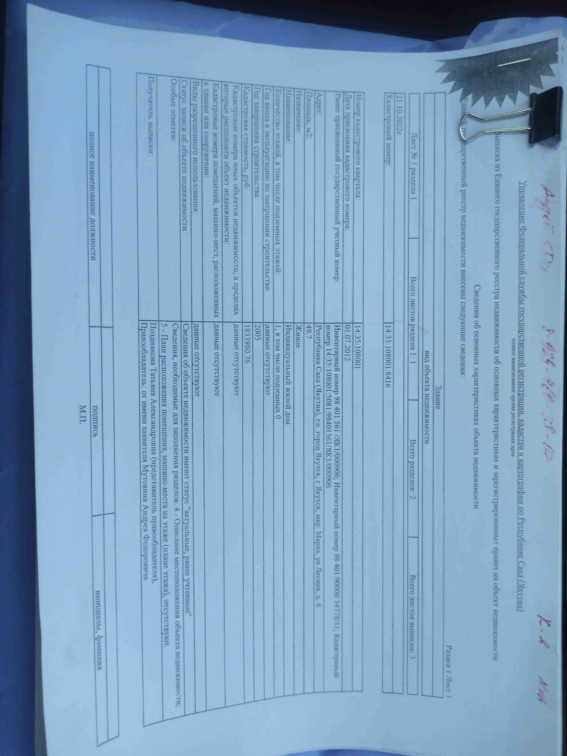 1-этажный дом, 50 м2, на продажу в Якутске, Лесная улица, 6