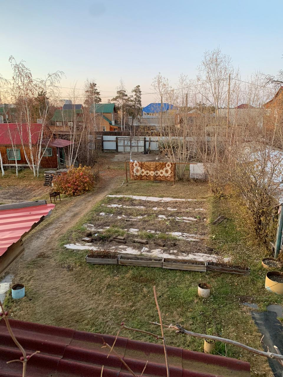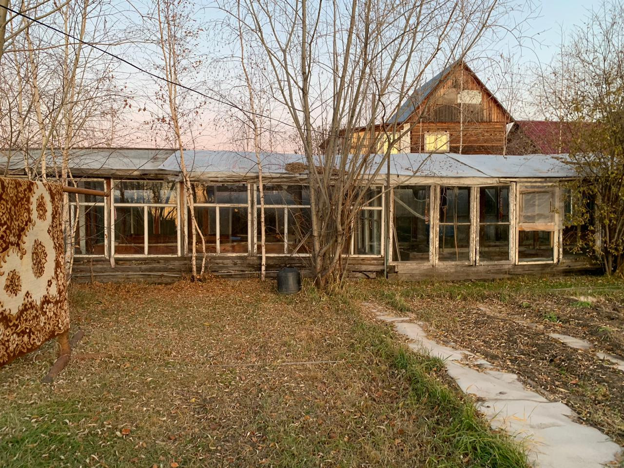 -Огромная теплица, грядки, кусты