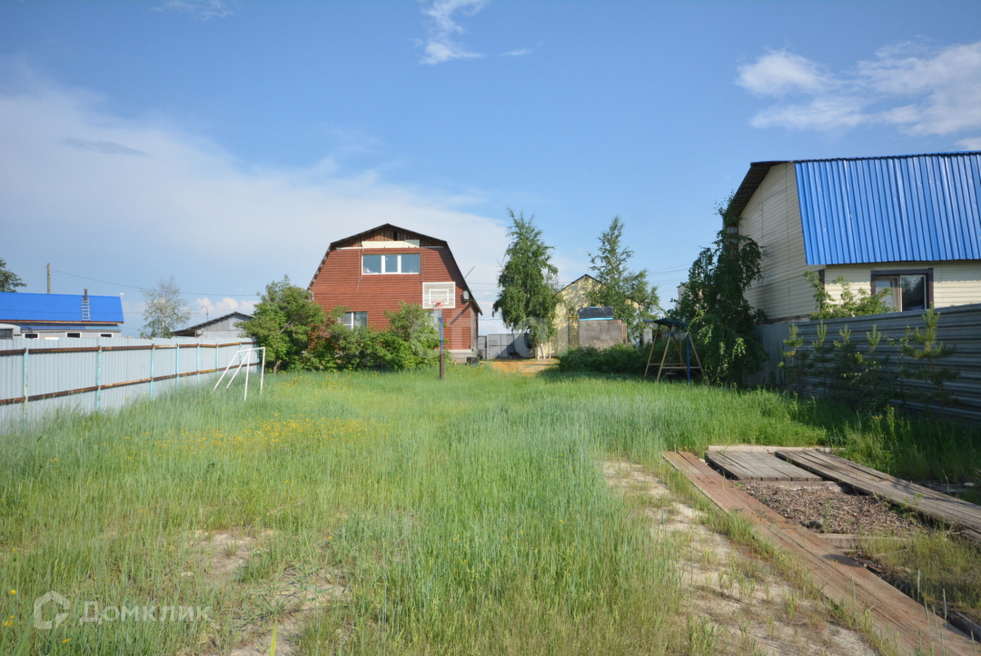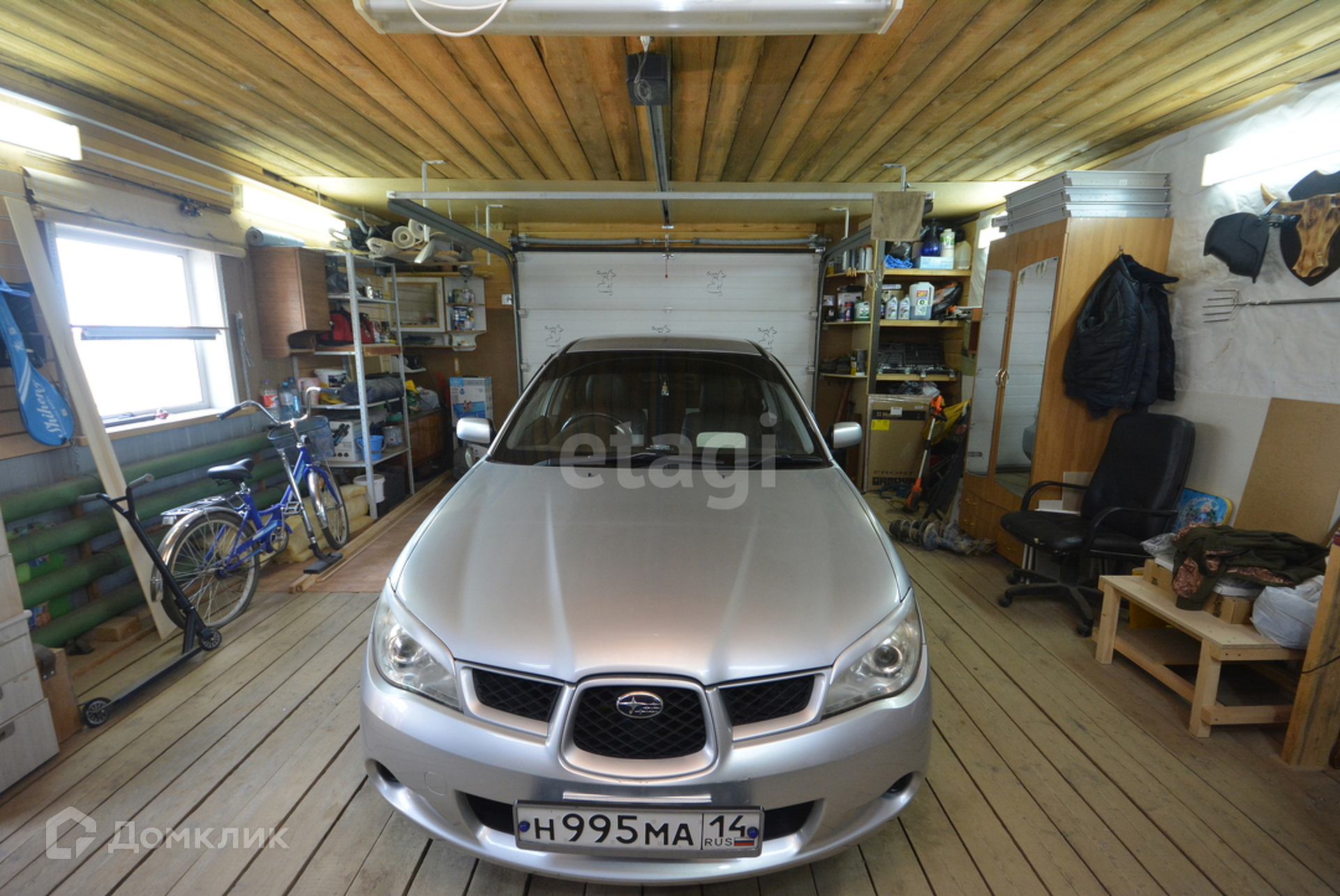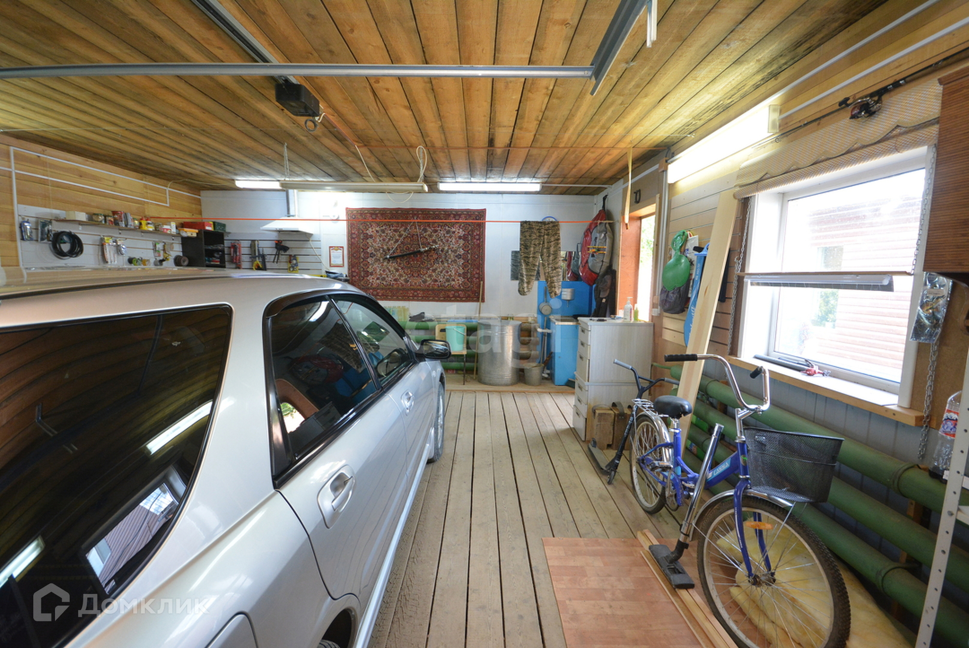 Гараж тёплый на 2 авто 49м2 с автоматическими воротами. Участок 11 соток, на участке растут березы, сосны, черемуха и малина.