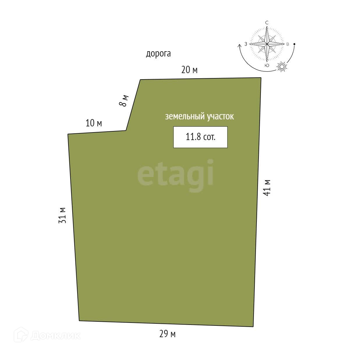 Площадь участка 11.8 сот.