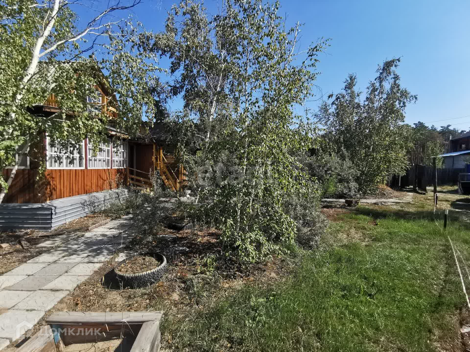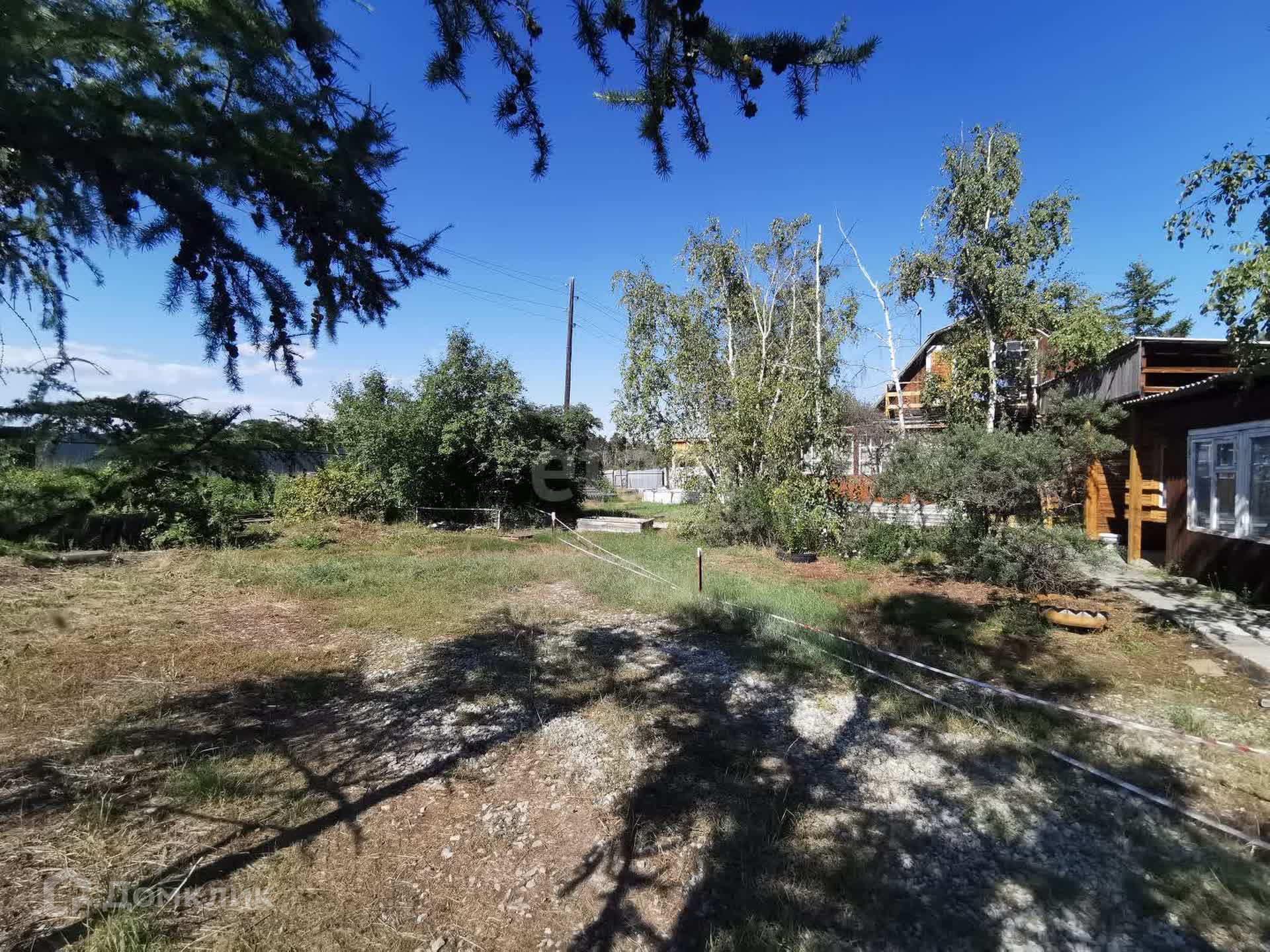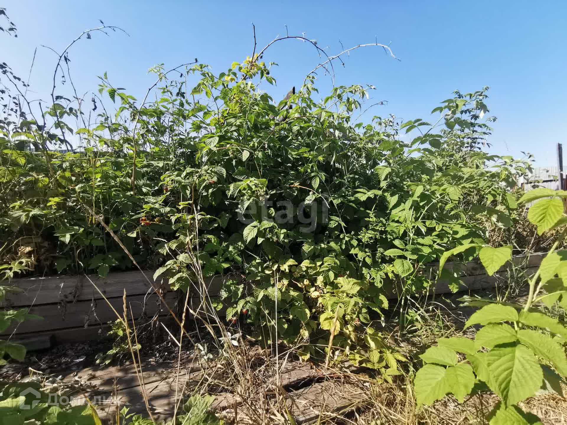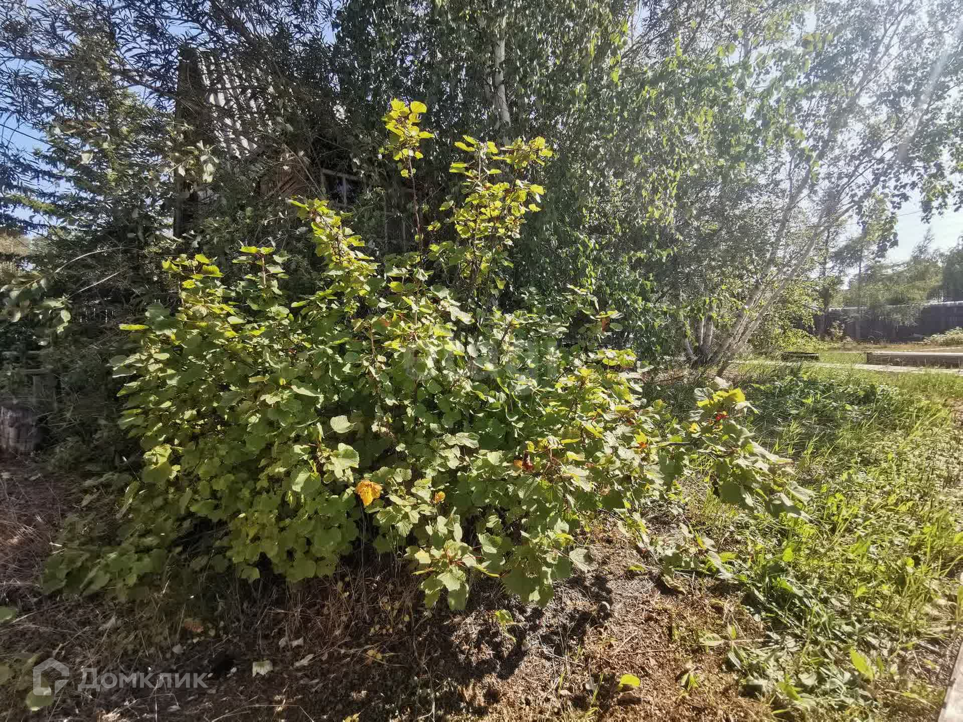 На участке березовая роща, красивая яблоня, малина, красная смородина, чёрная смородина, облепиха, многолетняя земляника и черемуха.