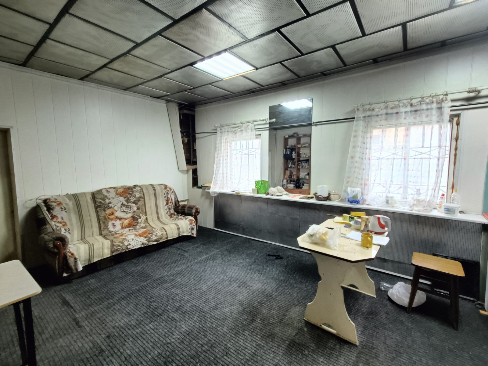 В доме прихожая, гостинная с кухней, 1 большая проходная комната и 2 спальни. Санузел в доме. Гараж пристроен к дому. Мебель и техника остается покупателю.
