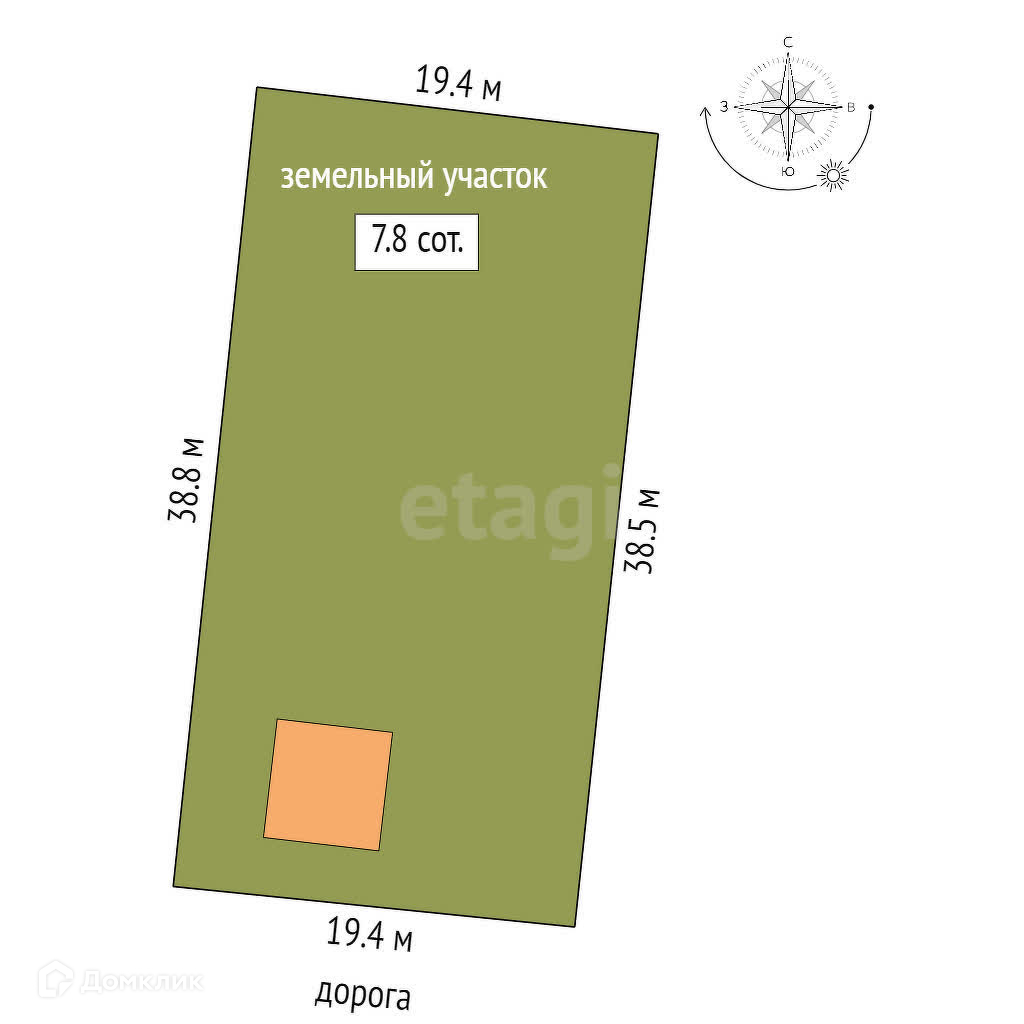 Площадь участка 7.8 сот.