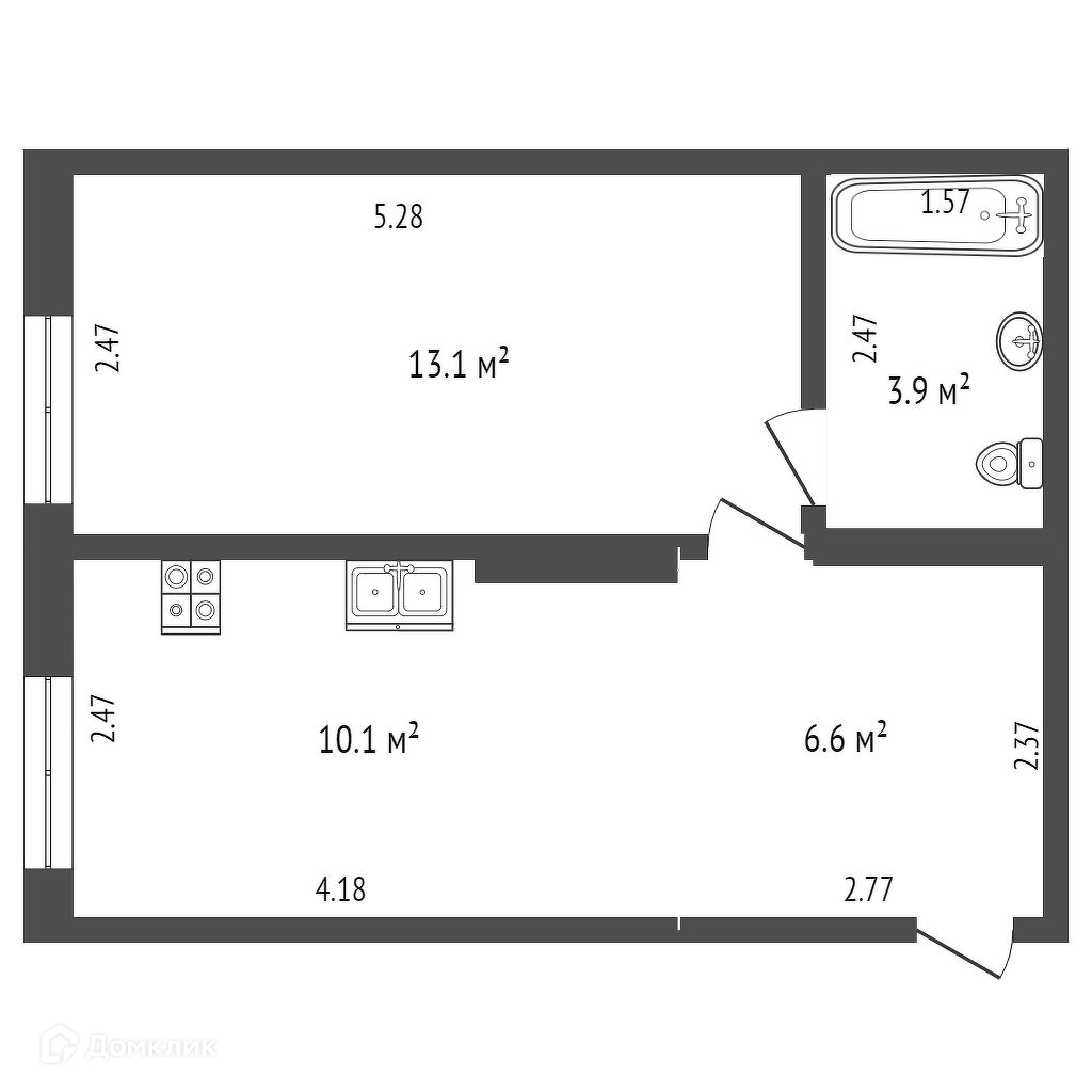 Общая площадь 33.7 м2