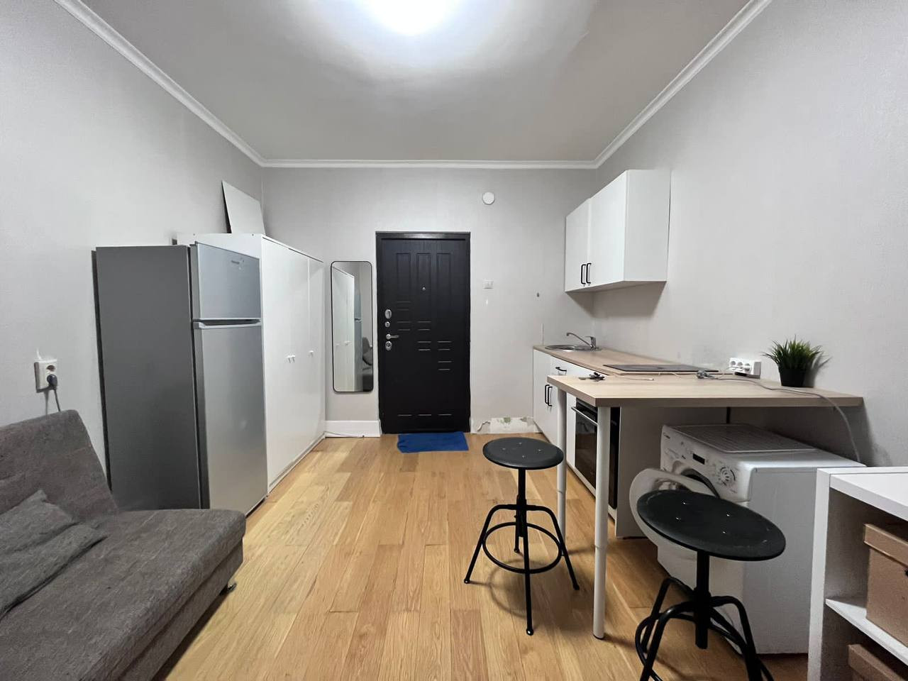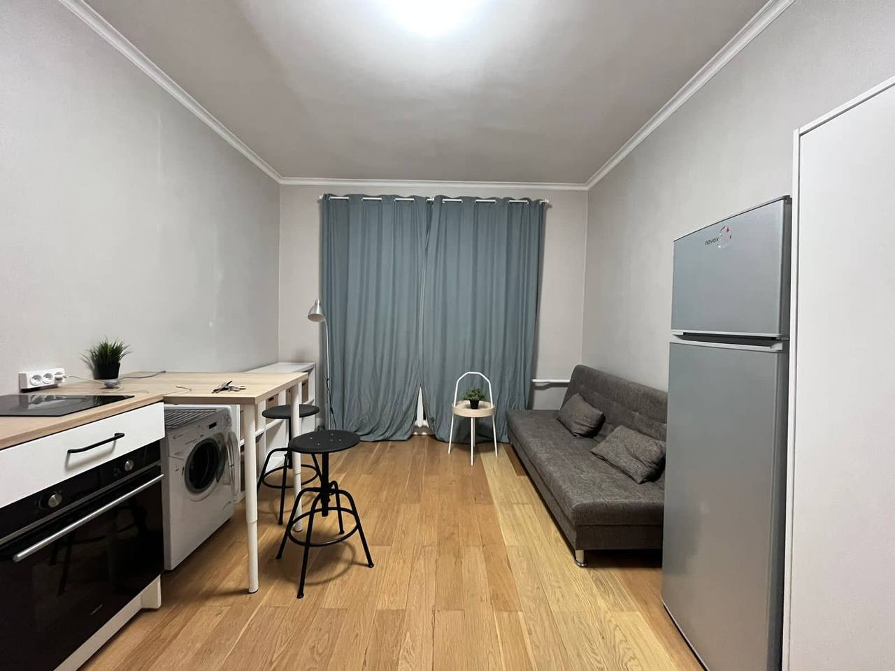 ✅Полностью оборудована мебелью и техникой (стиральная машина, холодильник, духовой шкаф, электрическая варочная панель, кухонная мебель, шкаф, диван, стол, стеллаж для вещей, зеркало)