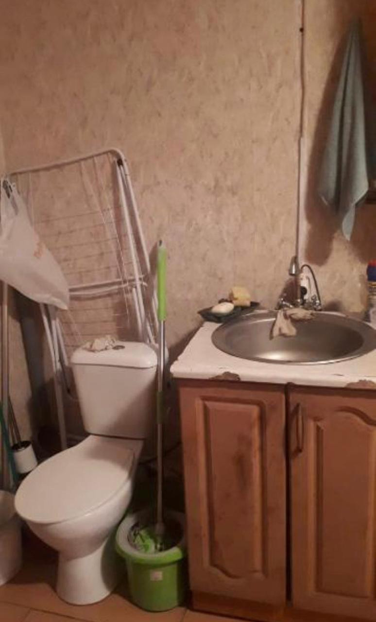 Комната с горячей и холодной водой, унитазом, раковиной, надёжной железной дверью, пластиковым окном