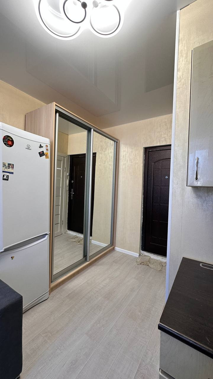 Свежий ремонт включает в себя натяжные потолки и стеклопакеты, что создаёт стильную и современную атмосферу.