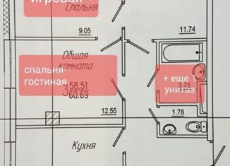 Продам двухкомнатную квартиру, 61 м2, улица Бестужева-Марлинского, 9/4