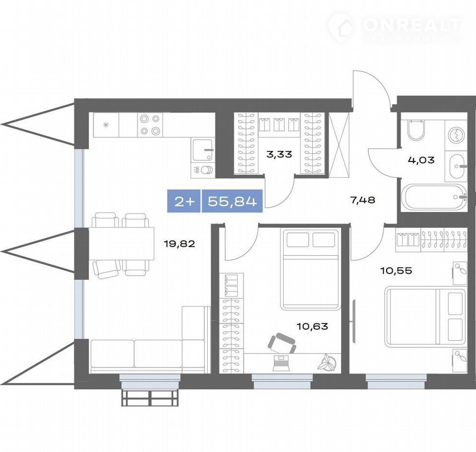 Общая площадь 55.8 м2