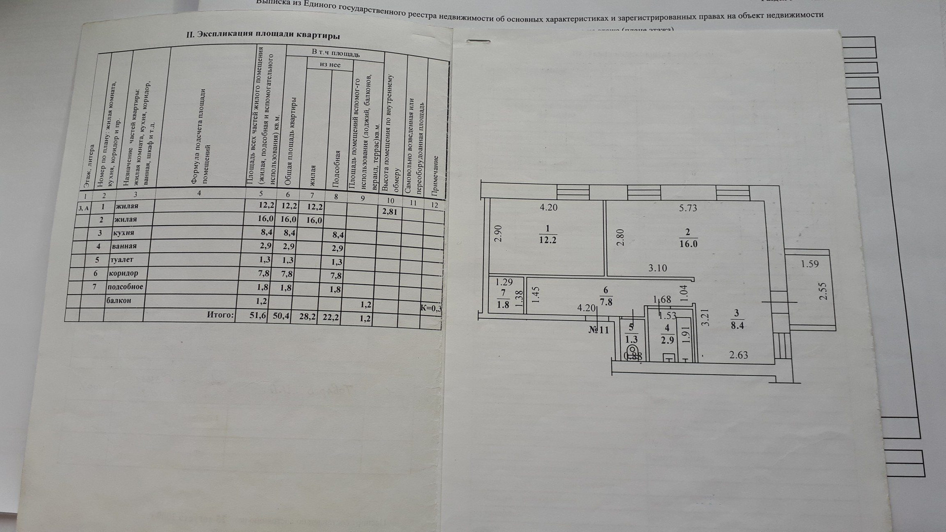 Общая площадь 50.4 м2