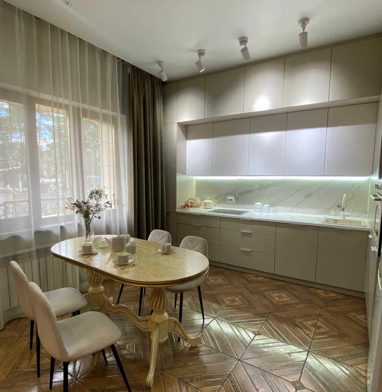 В квартире сделан Дизайнерский, красивый ремонт в спокойных тонах.