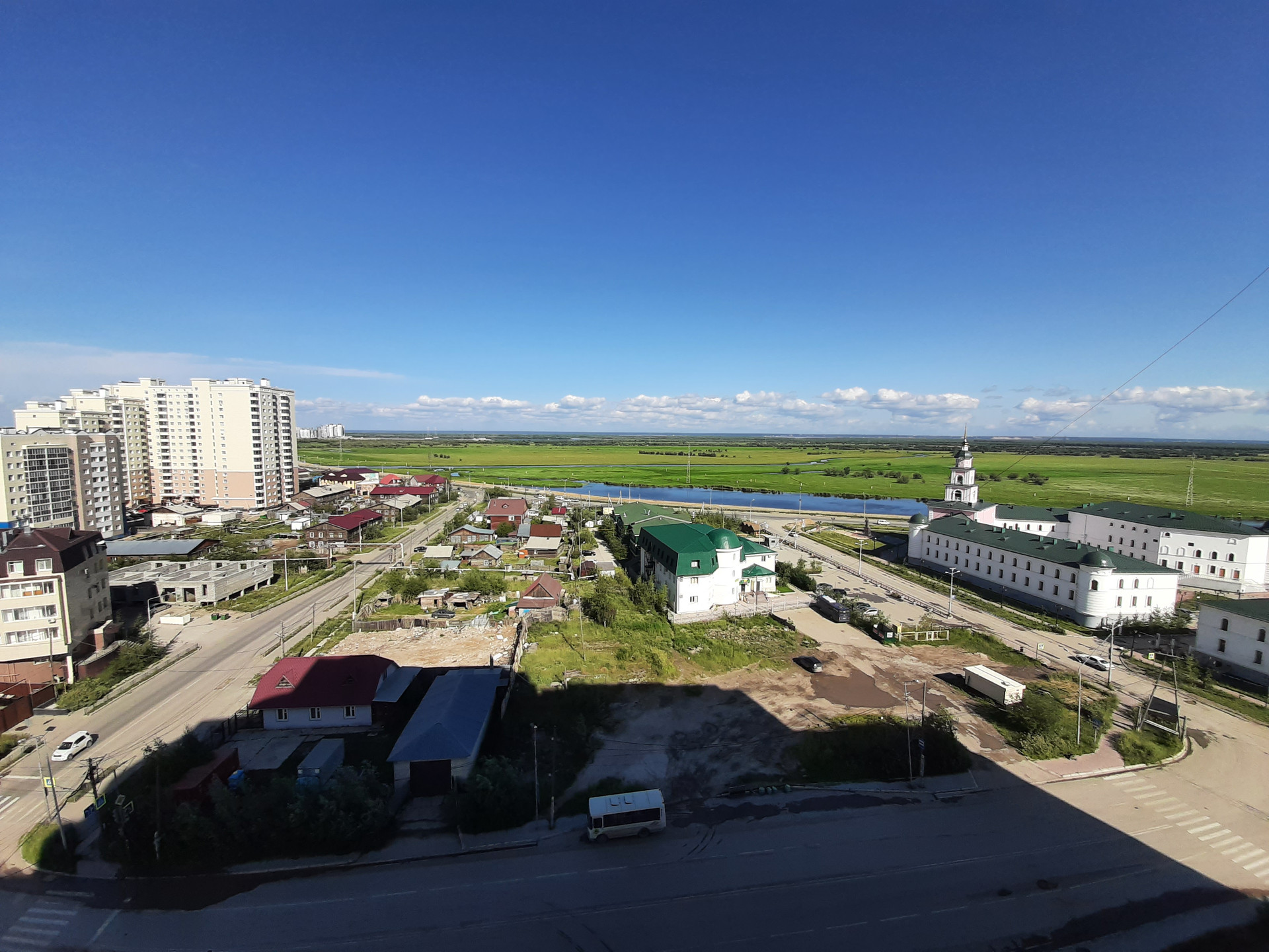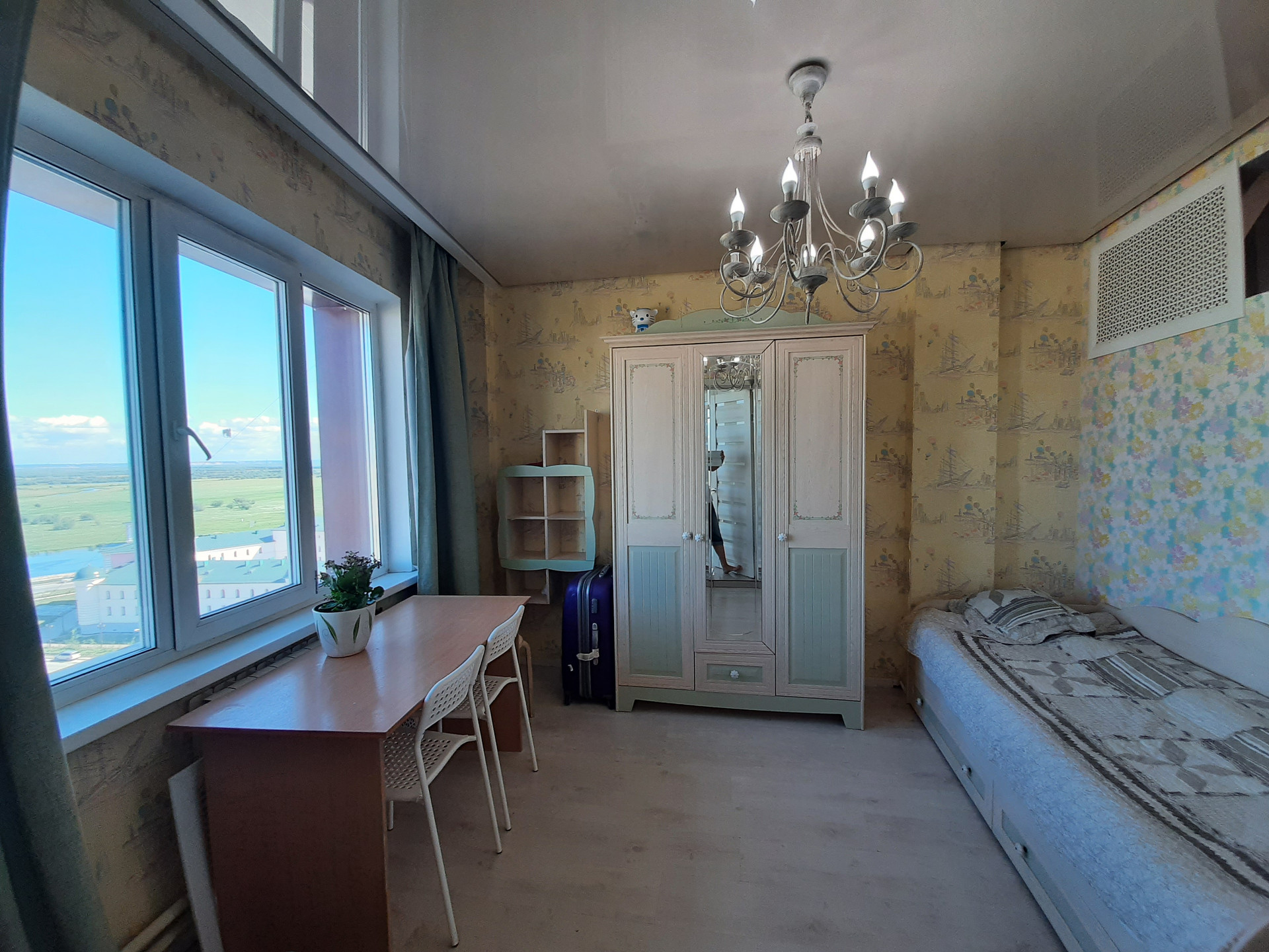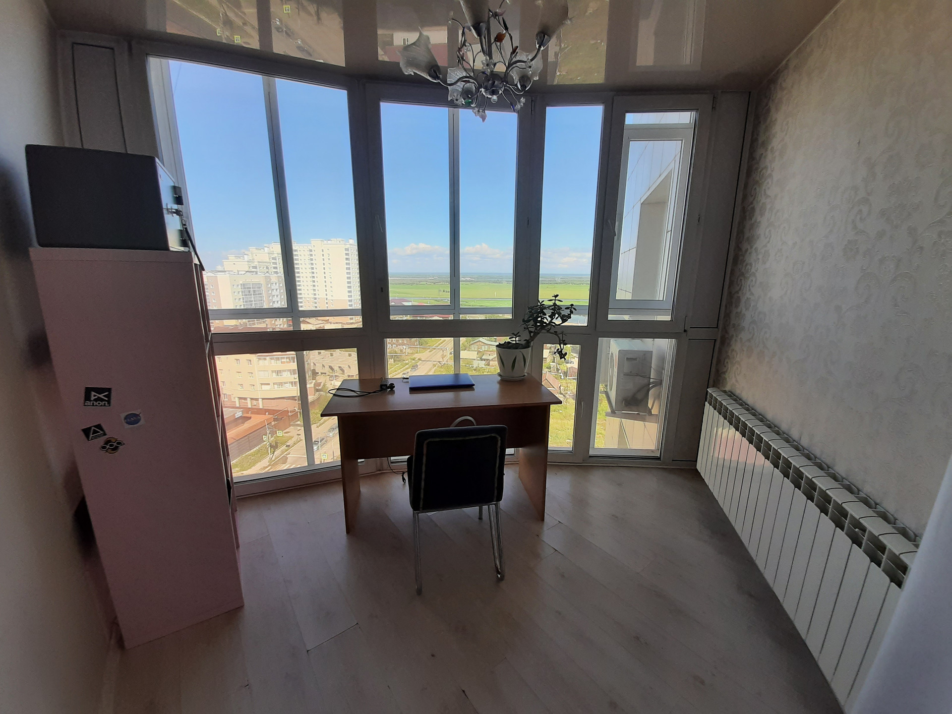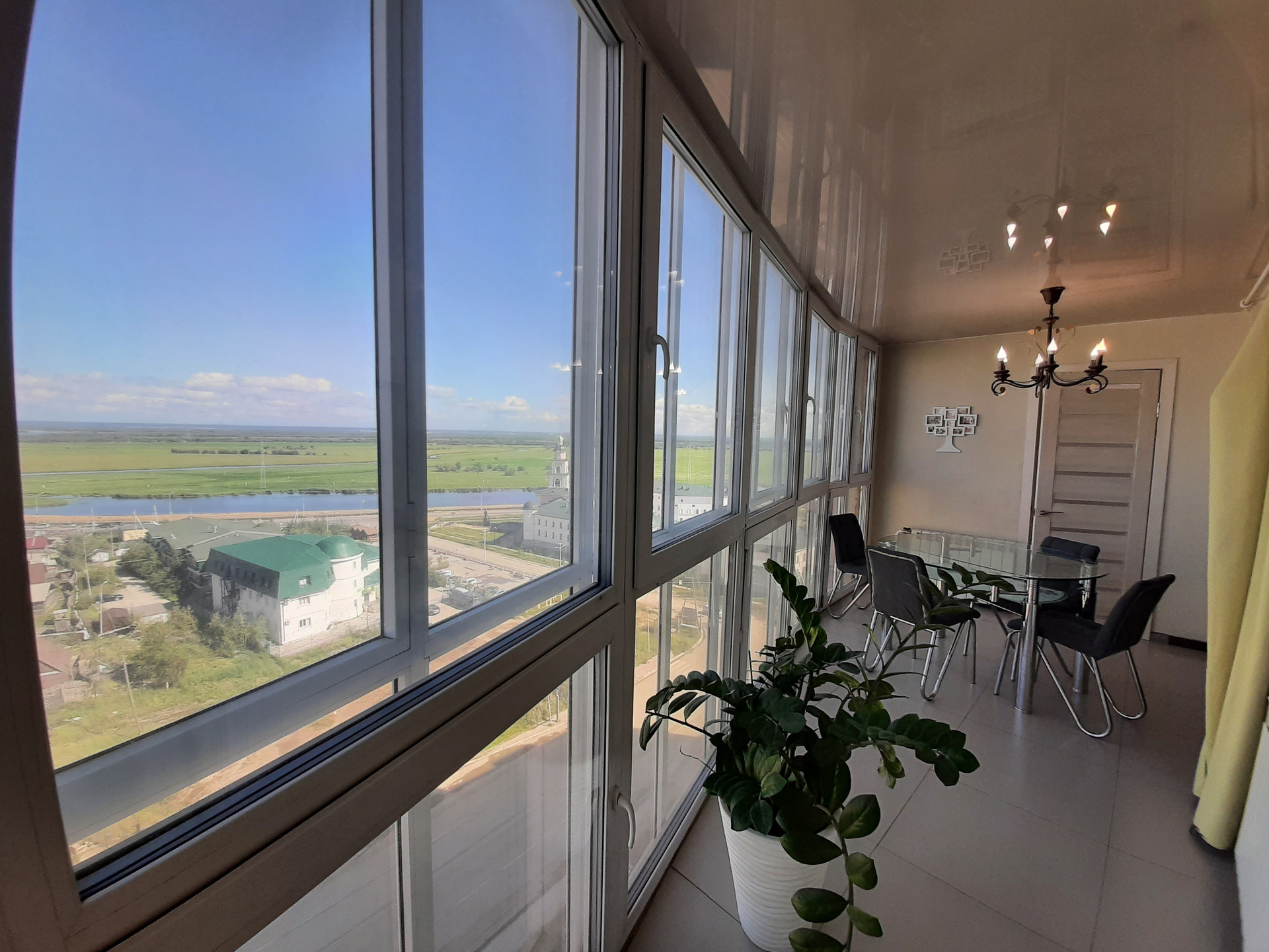 11 этаж, панорамные окна с видом на Зеленый луг, церковь и проспект.
