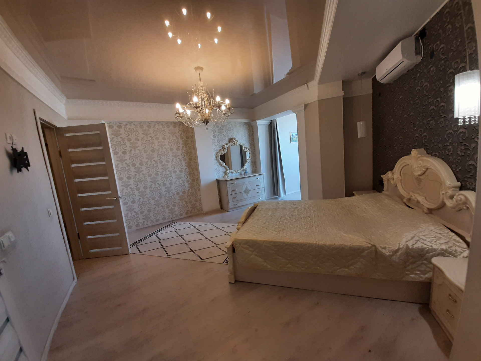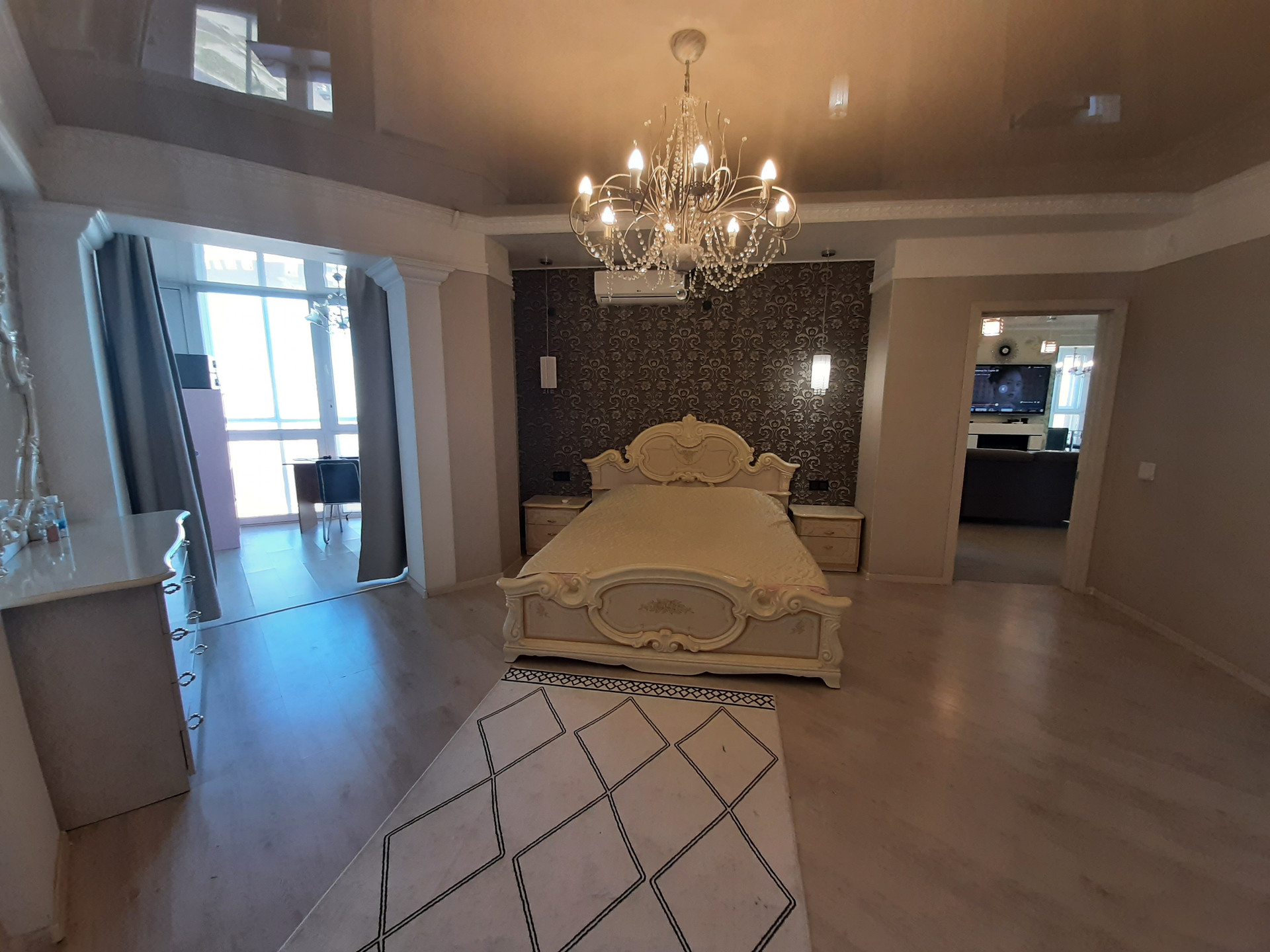 Большая гостиная, полностью оснащённая техникой кухня, большая спальня с гардеробной, кабинетом и санузлом, спальня с видом на проспект, 2 детские комнаты со спортивным уголком. 2 санузла, 2 гардеробные, джакузи, электронное биде, прачечная со стиральной машиной и сушкой, теплые полы, кондиционеры. Заходи и живи!