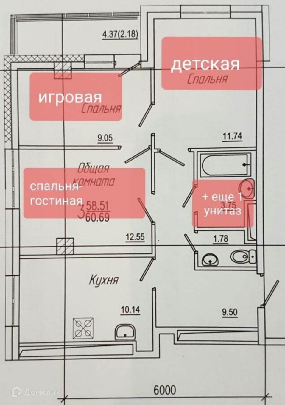 Общая площадь 60 м2