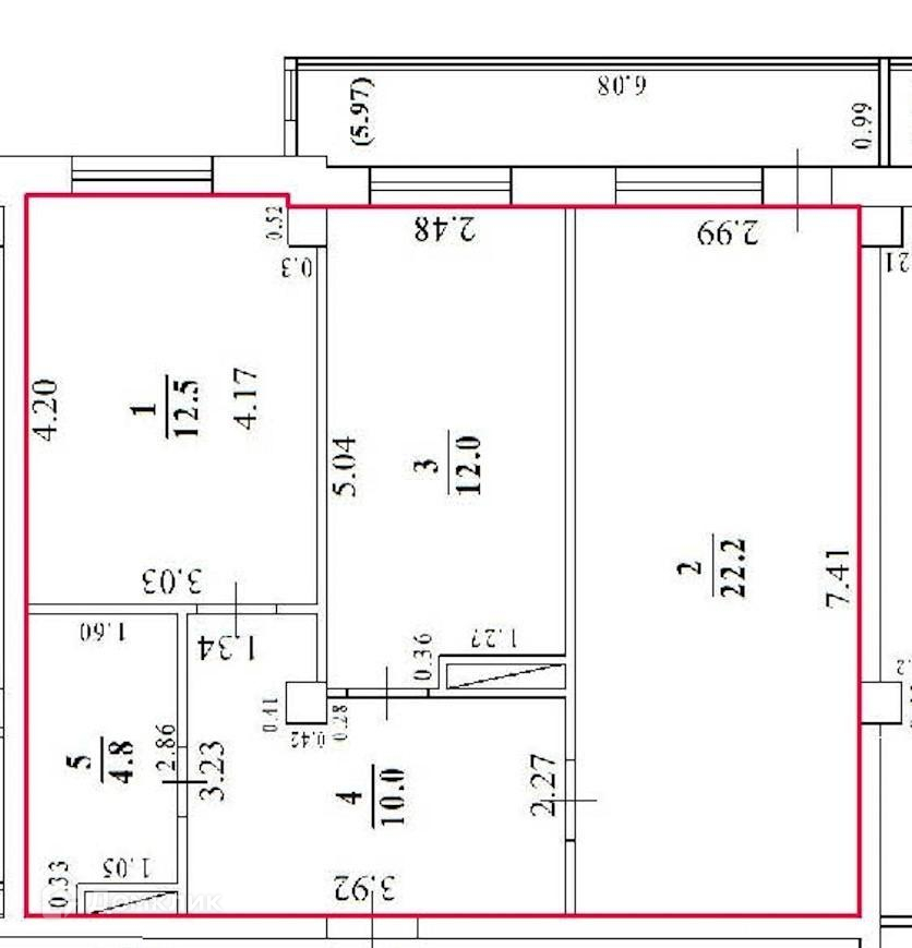 Балкон, лоджия 1 балкон