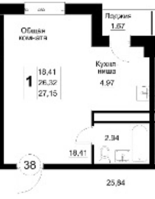 Общая площадь 27.15 м2