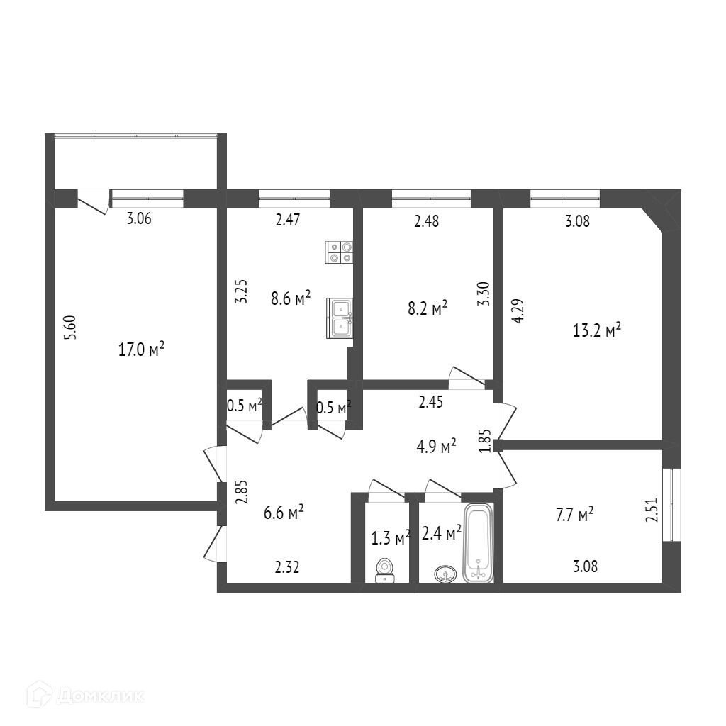 Площадь 71 м2.