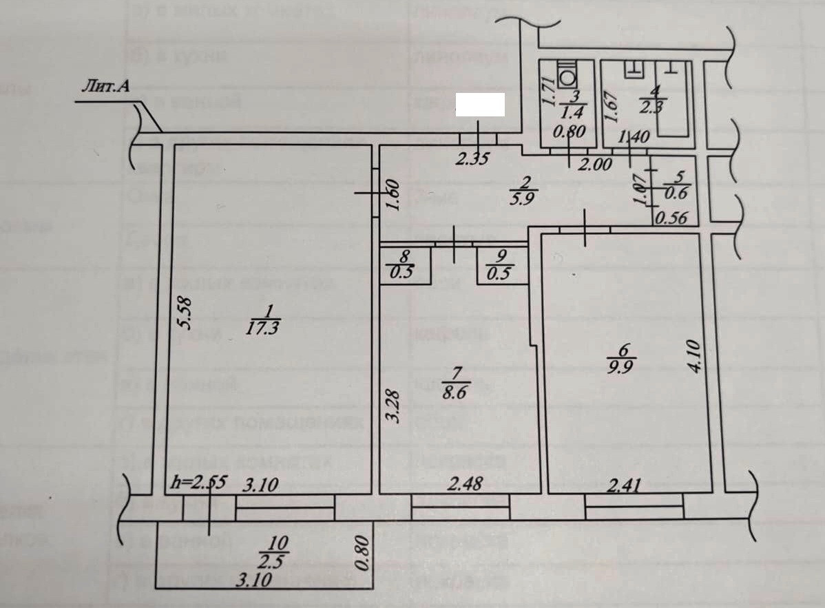 Высота потолков 2.55 м
