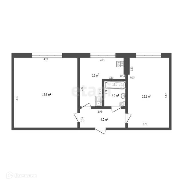 Продается уютная 2-комнатная квартира в благоустроенном деревянном доме 1979 года постройки. Общая площадь 43,3 кв.м.