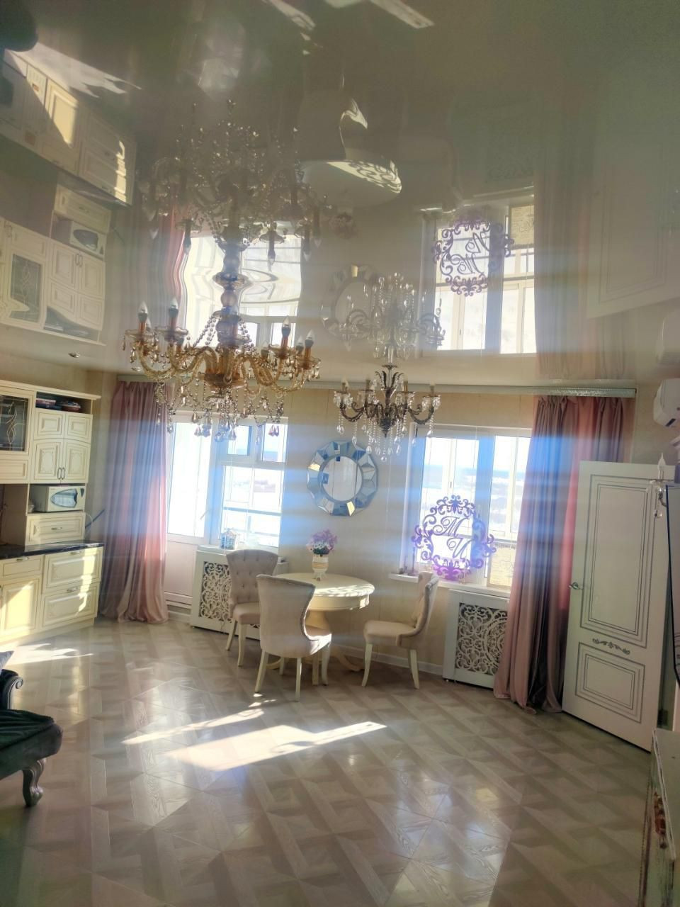 В квартире выполнен евроремонт с использованием итальянских , германских материалов. Межкомнатные двери натуральный шпон. Так же, в квартире установлен кондиционер.