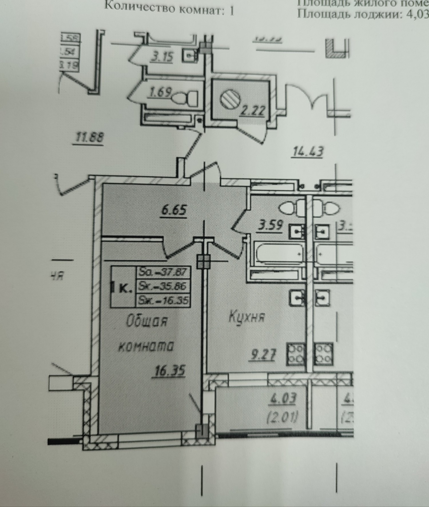 Общая площадь 40.4 м2